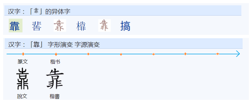 非、告两范式叠加:犹两相不同而紧挨在一起有所依附仰仗凭恃者是靠字之范式。
