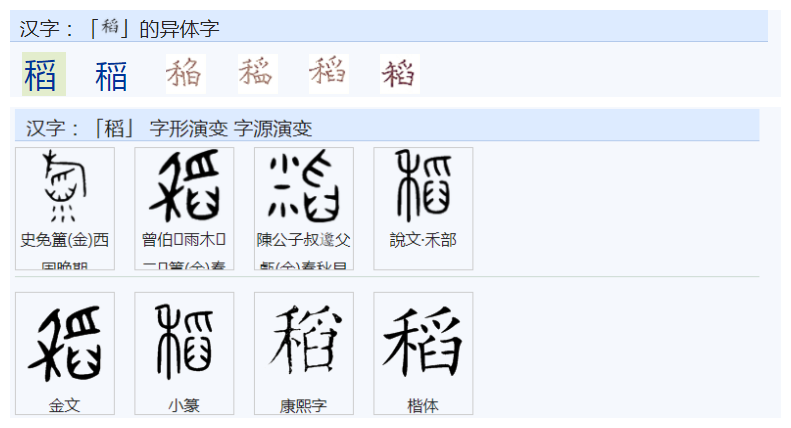 《说文解字》:“稻,稌也。从禾、舀声。”。