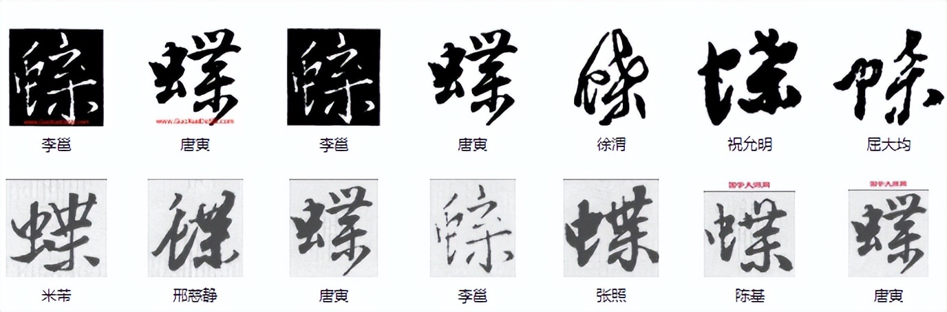 繁体字“蜨”简化为“蝶”是根据古人(异体字、同旁字)书法省笔规范简化。