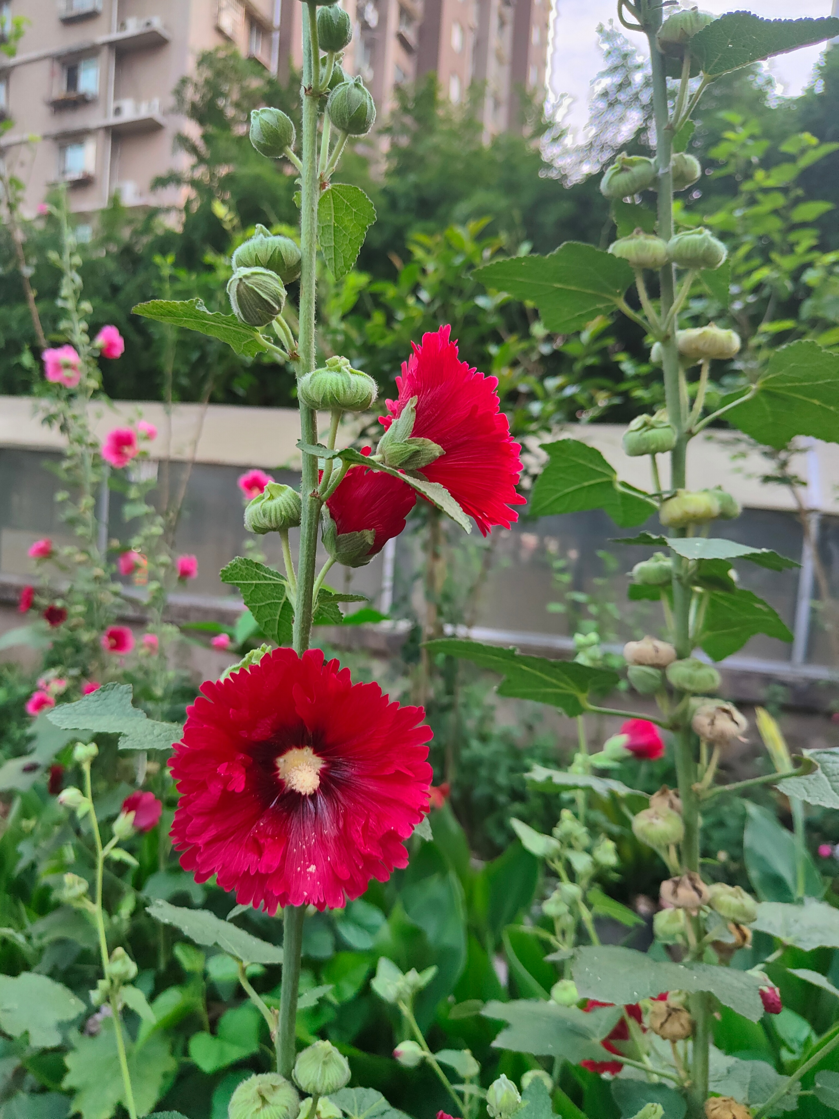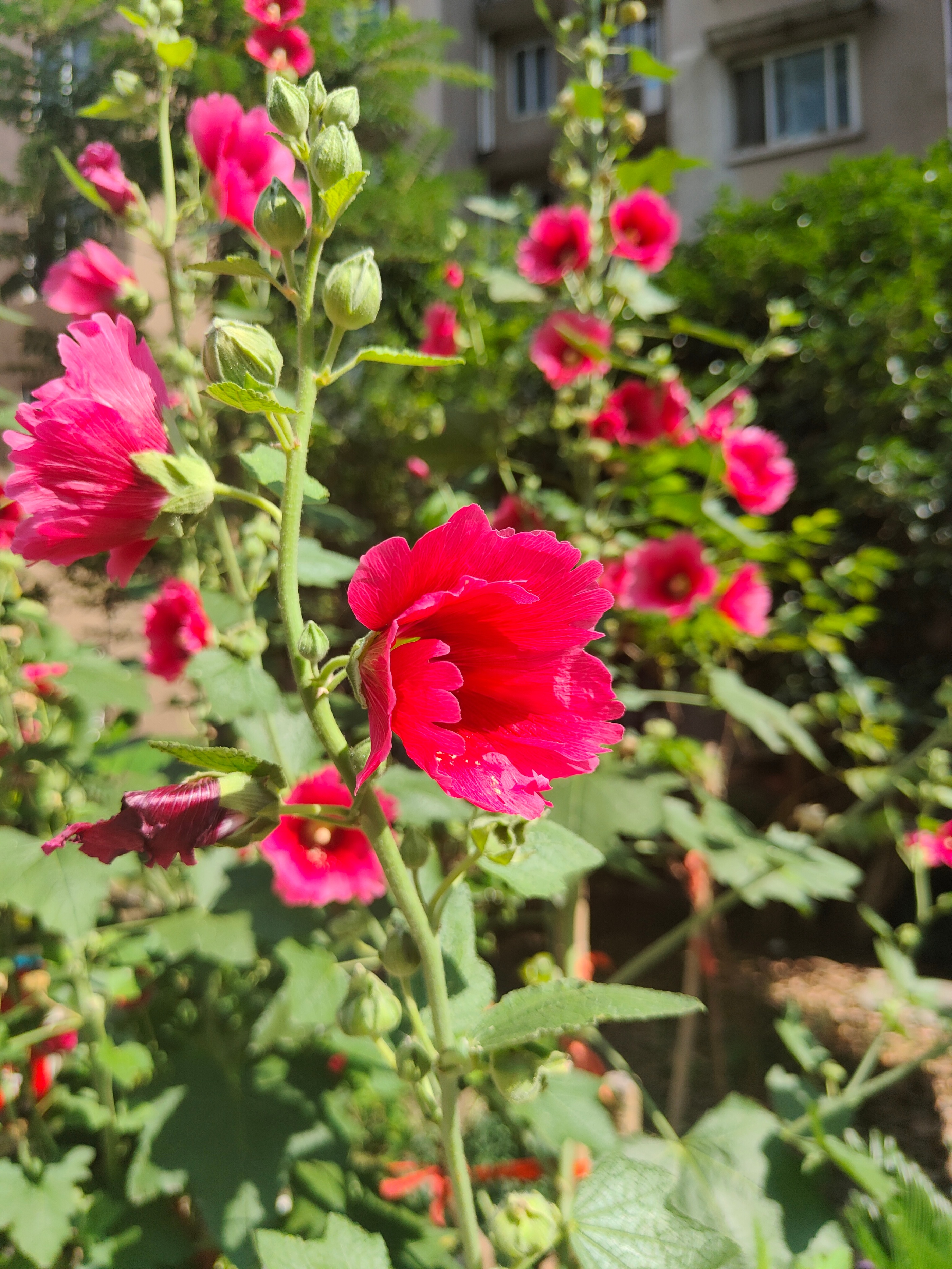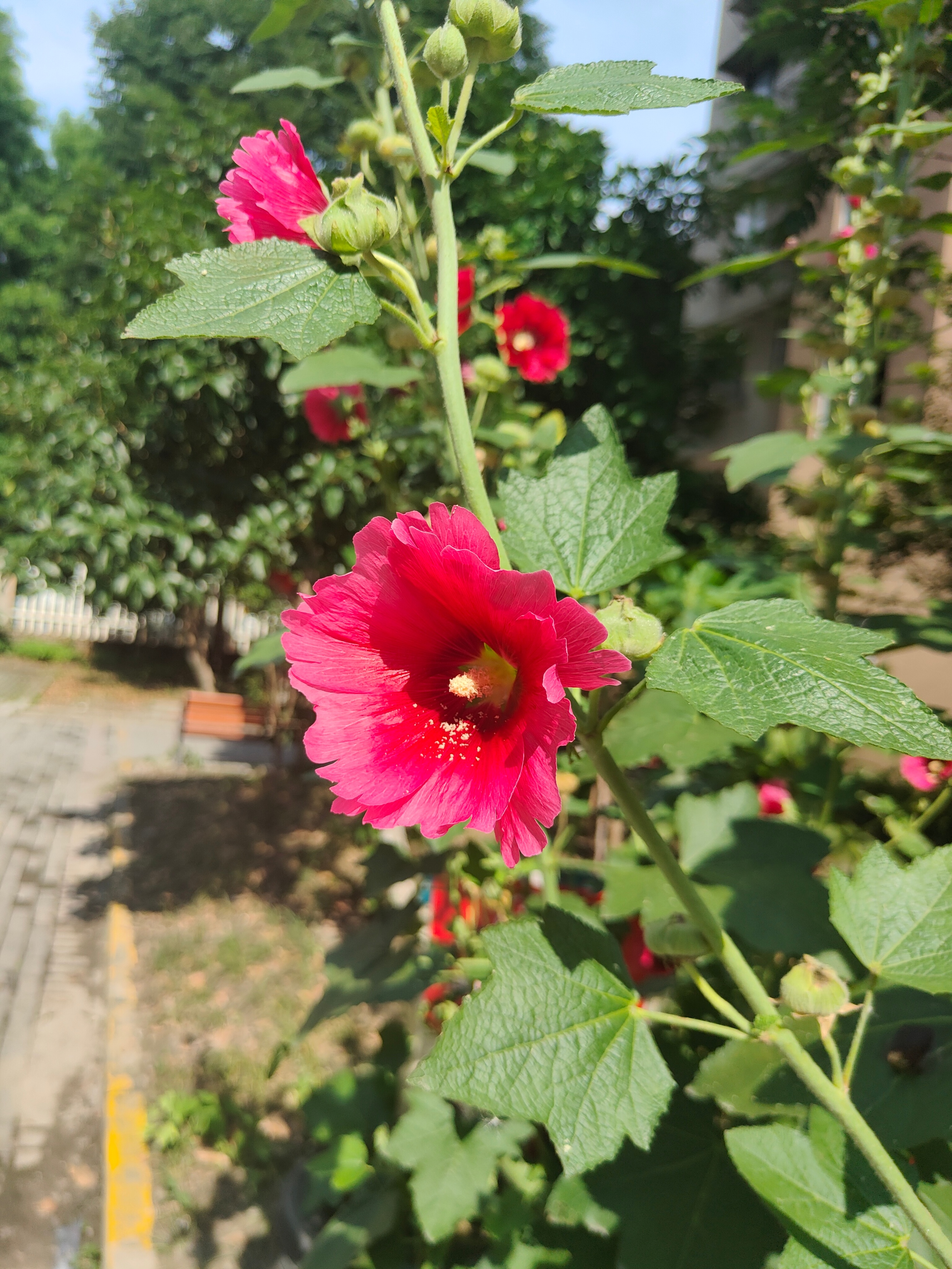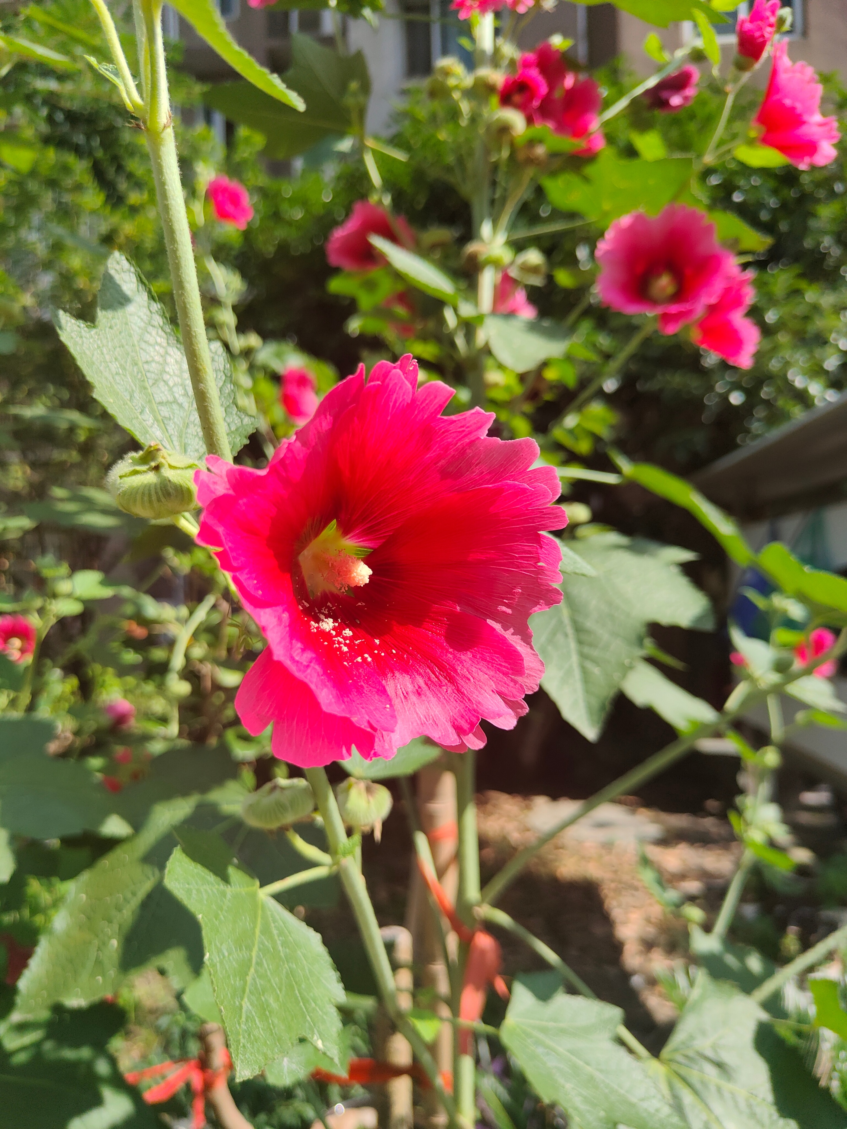 嫣红一丈秀娉婷,小院欣欣竞日荣。