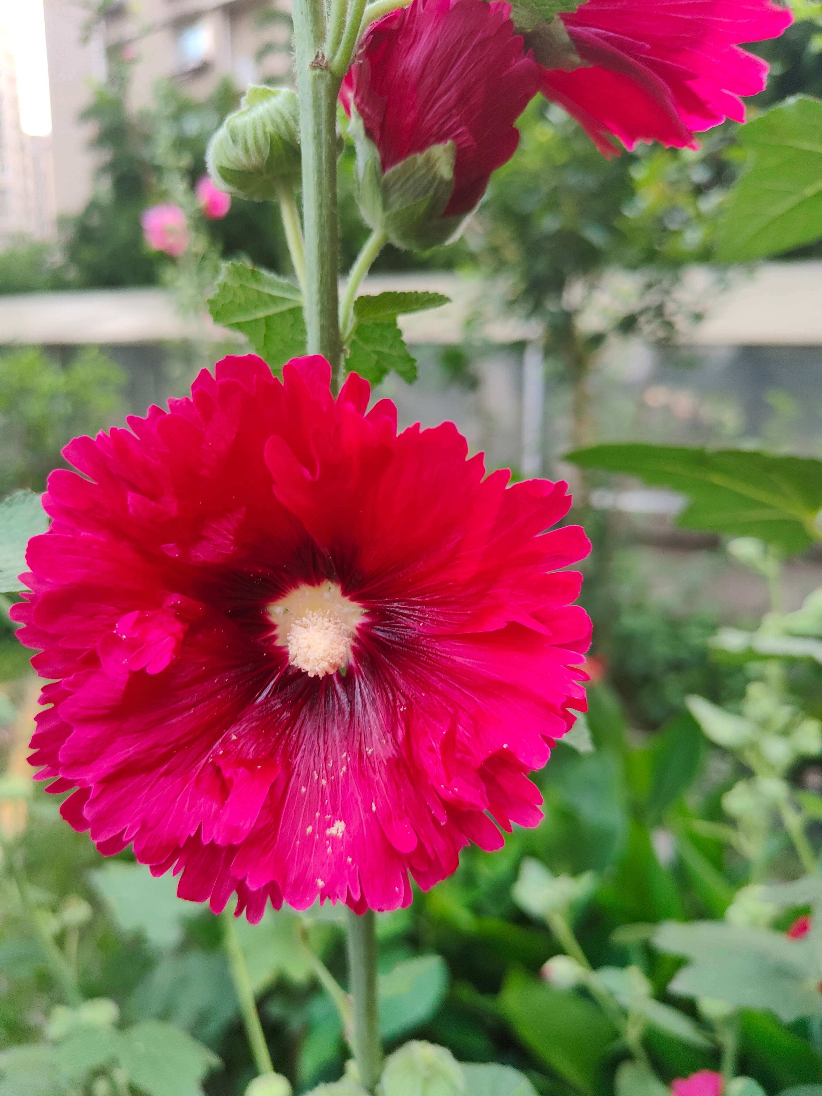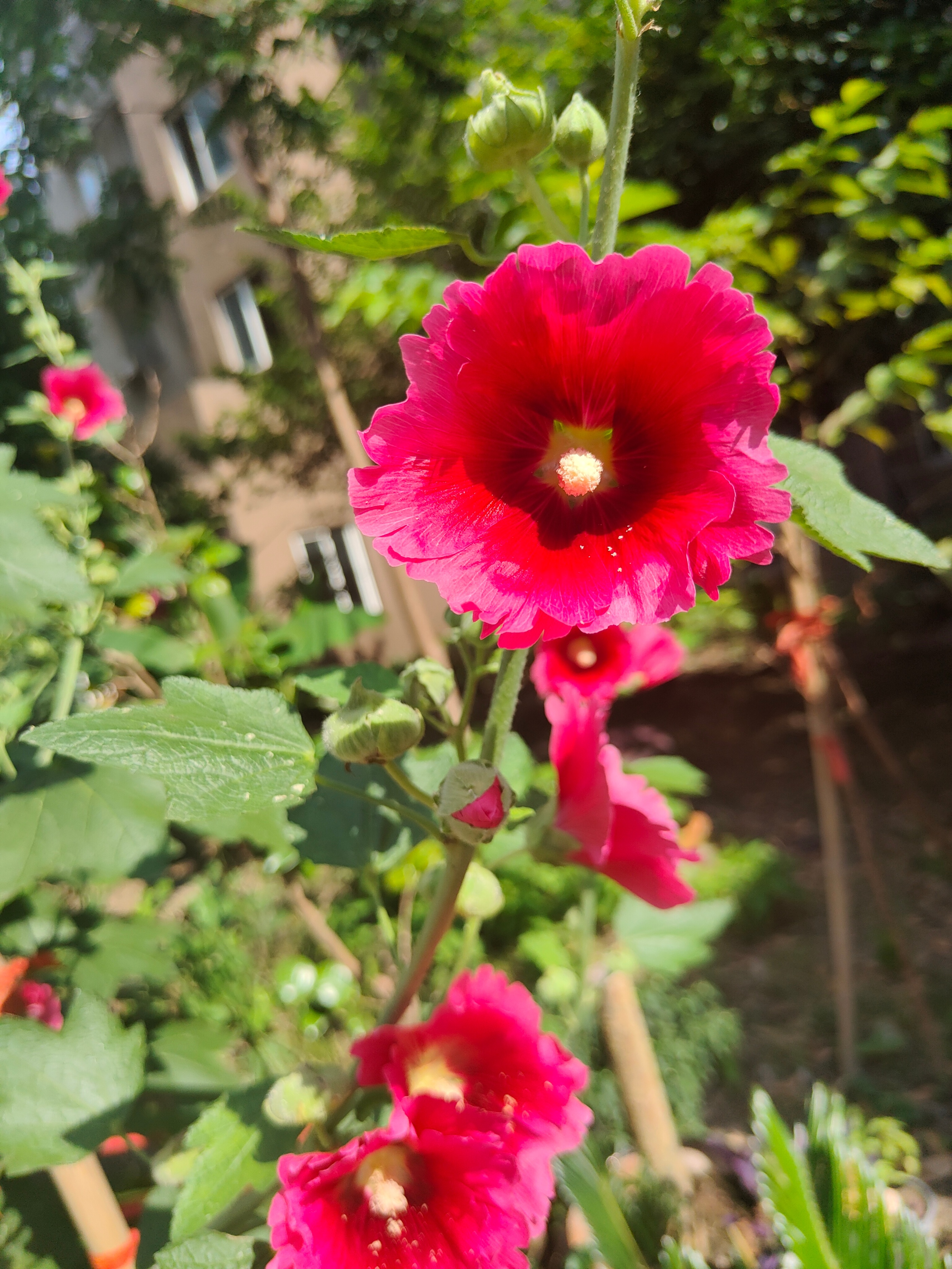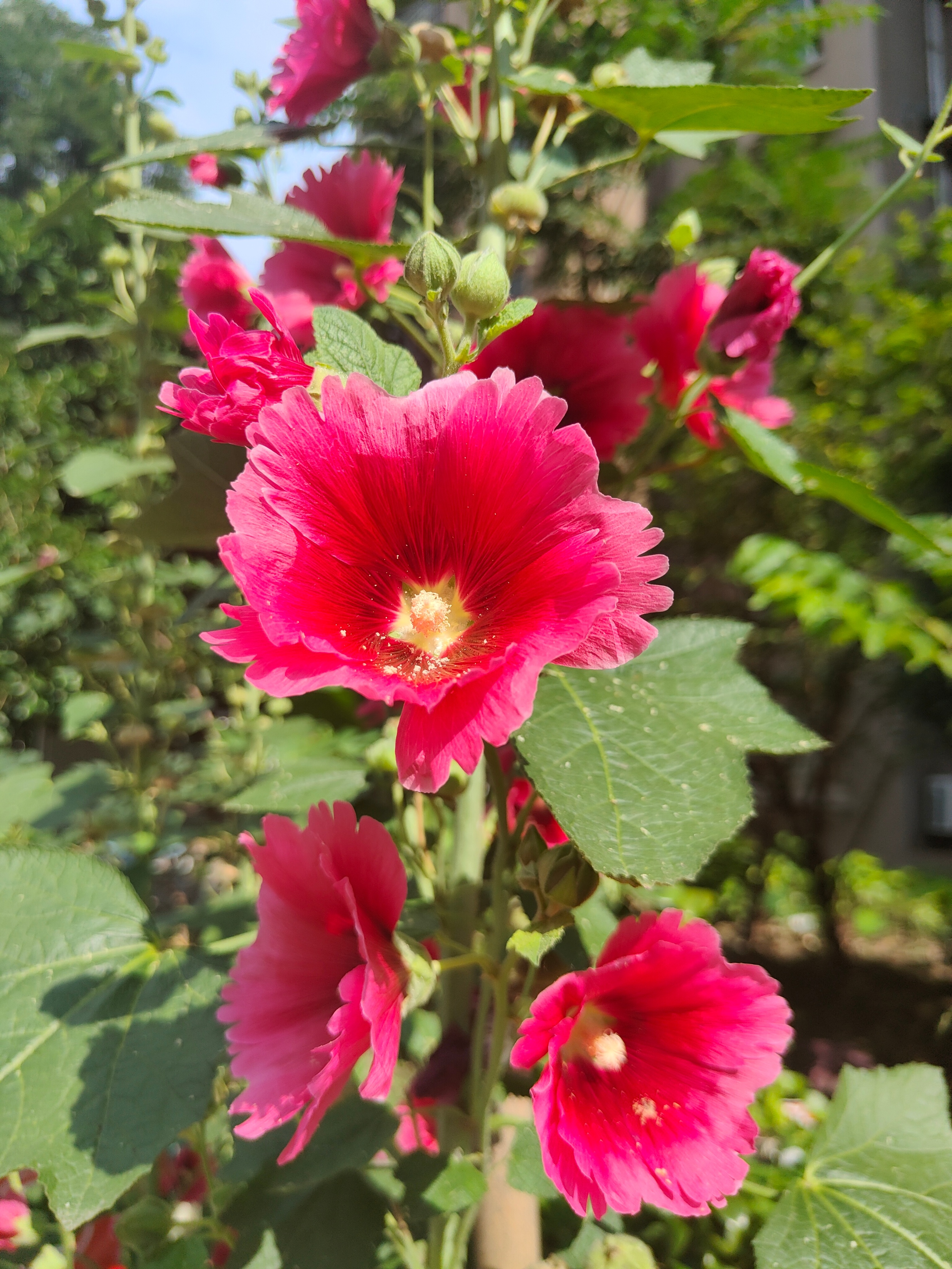 嫣红一丈秀娉婷,小院欣欣竞日荣。