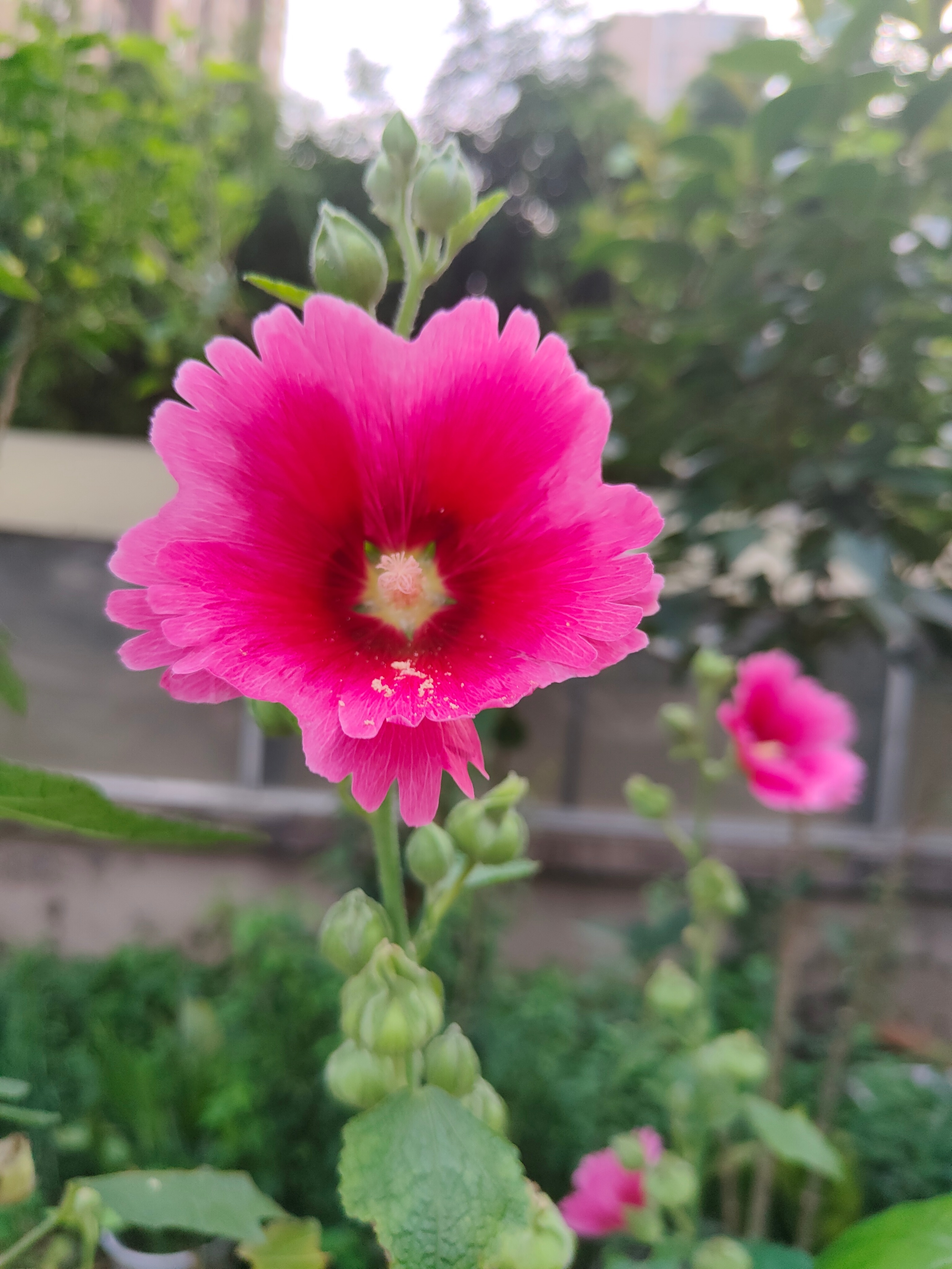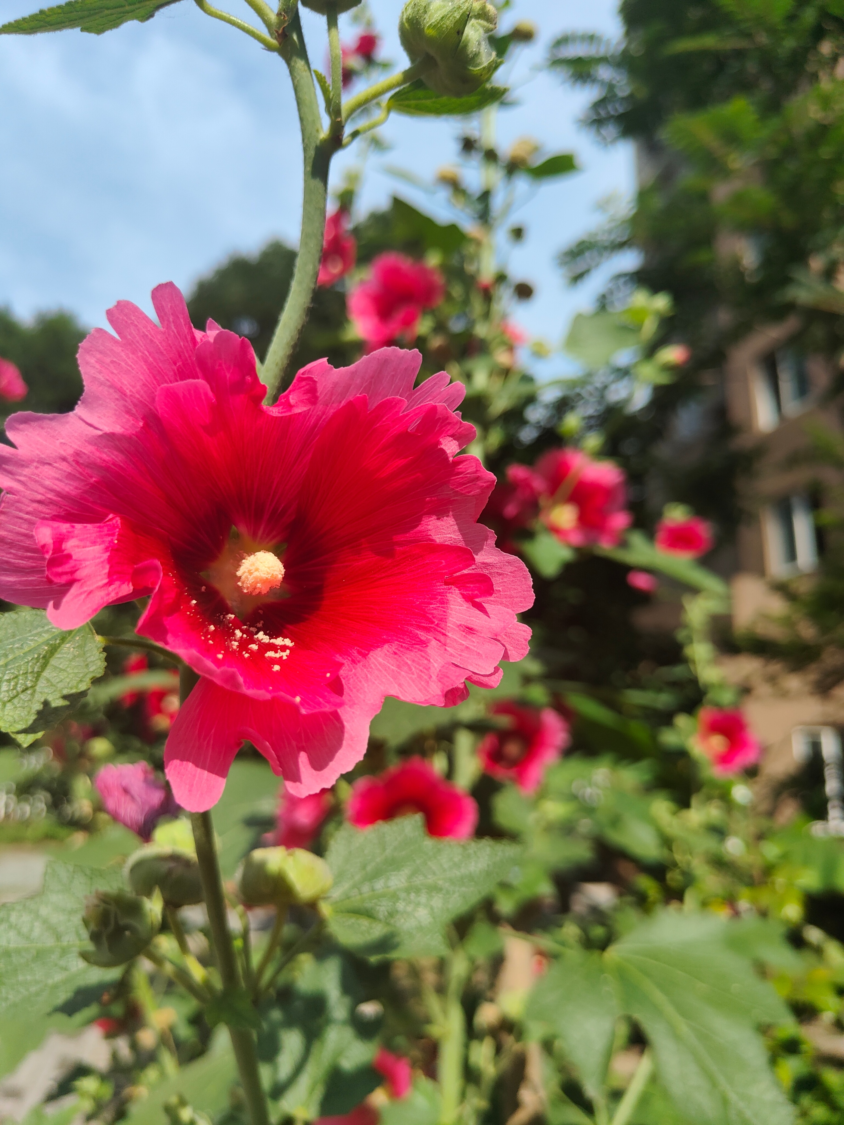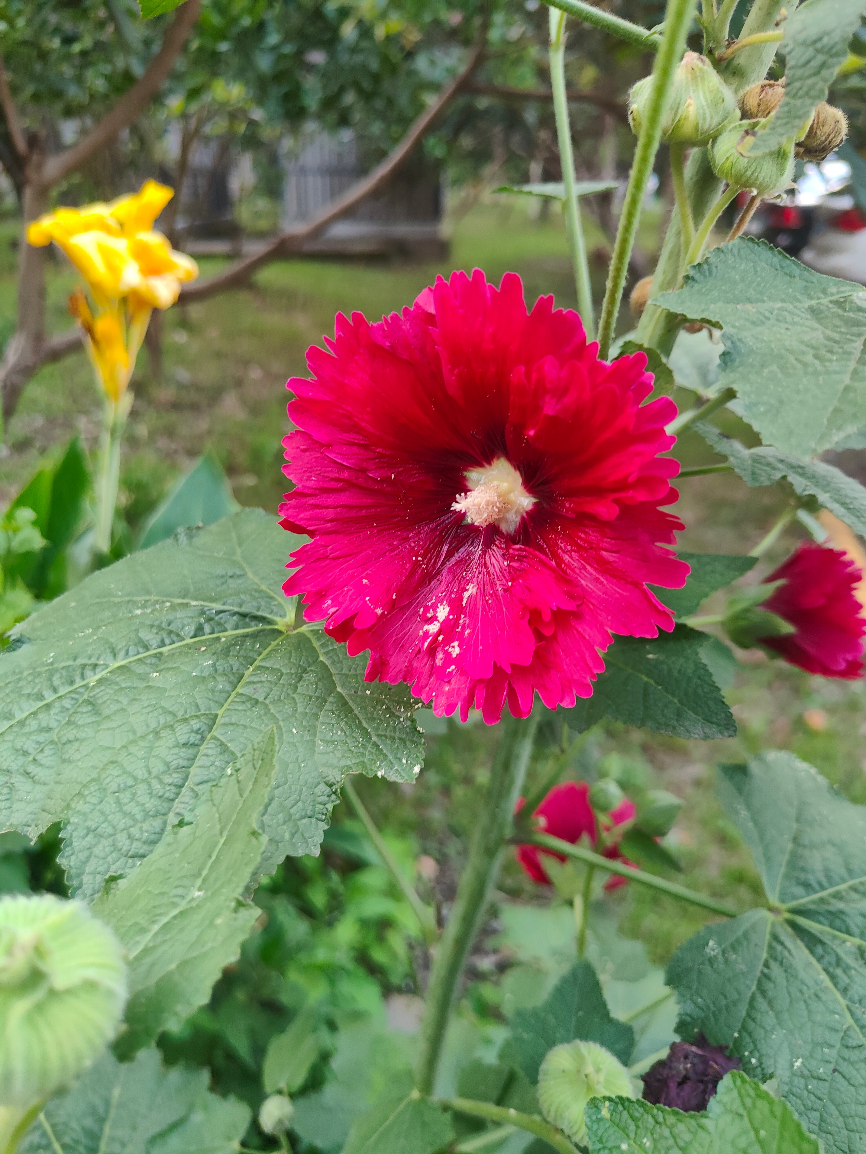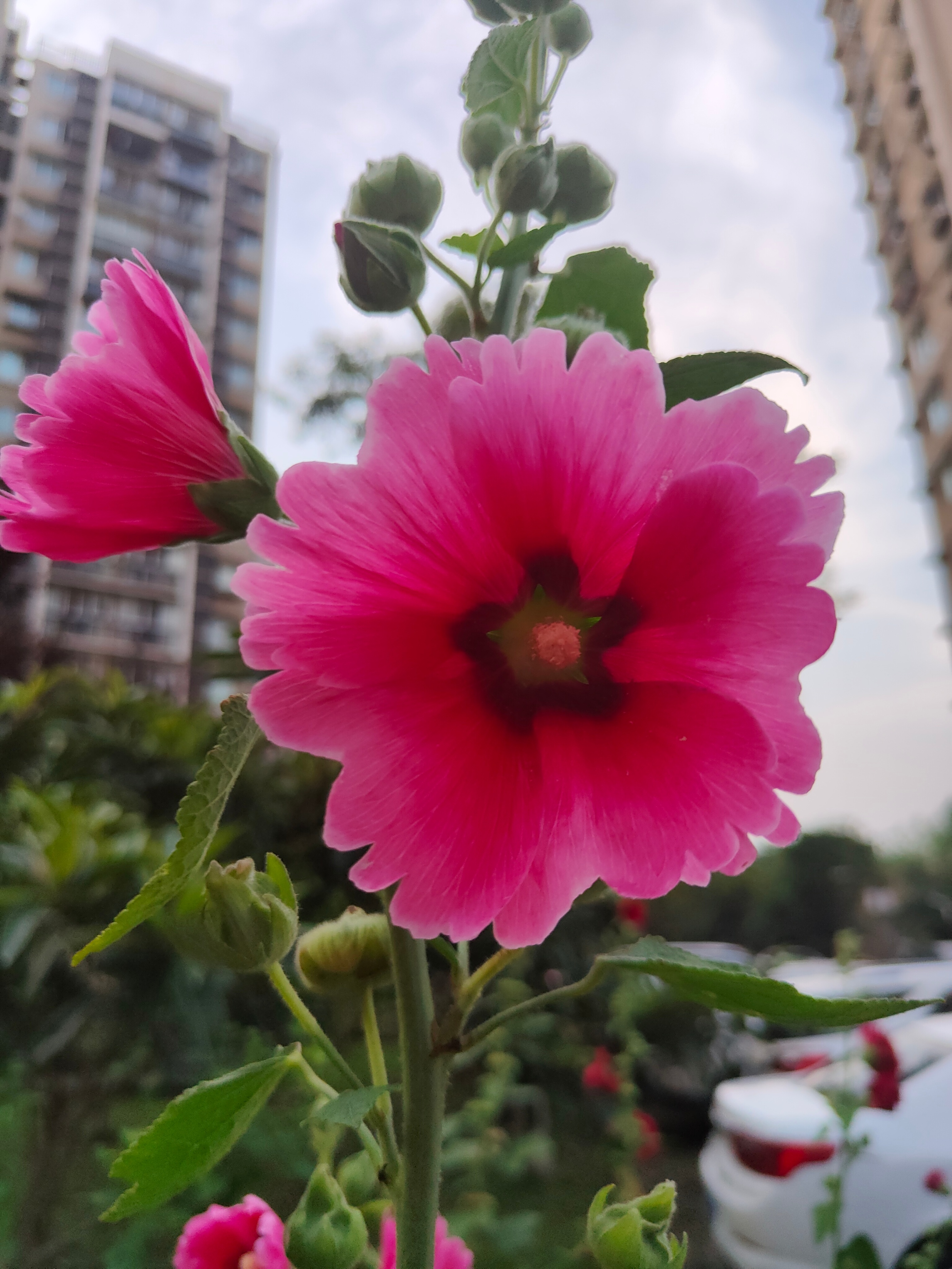 嫣红一丈秀娉婷,小院欣欣竞日荣。