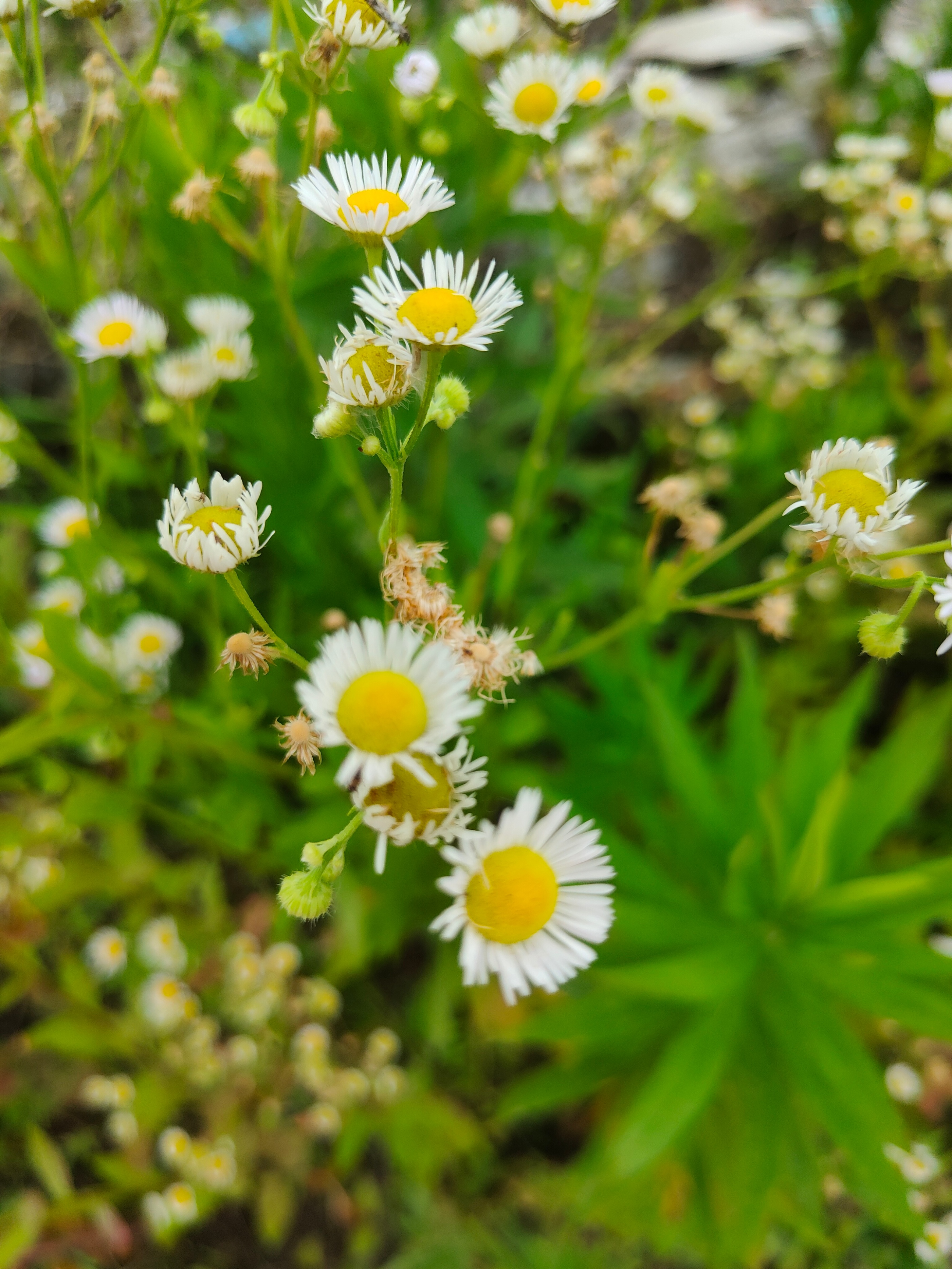 一年蓬别名女菀、野蒿、牙肿消、牙根消、千张草、墙头草、长毛草、地白菜、油麻草、白马兰、千层塔、治疟草、瞌睡草、白旋覆花。