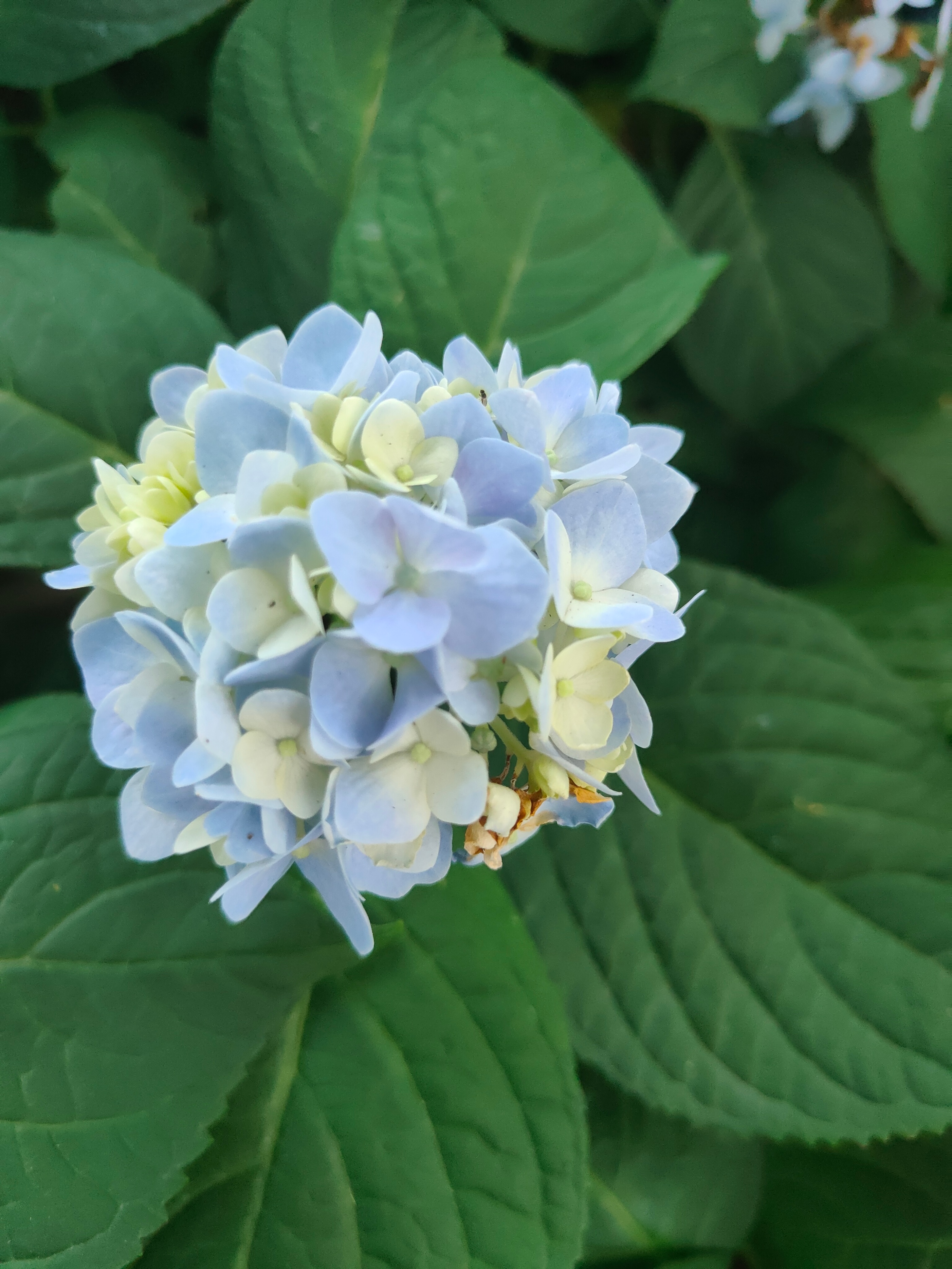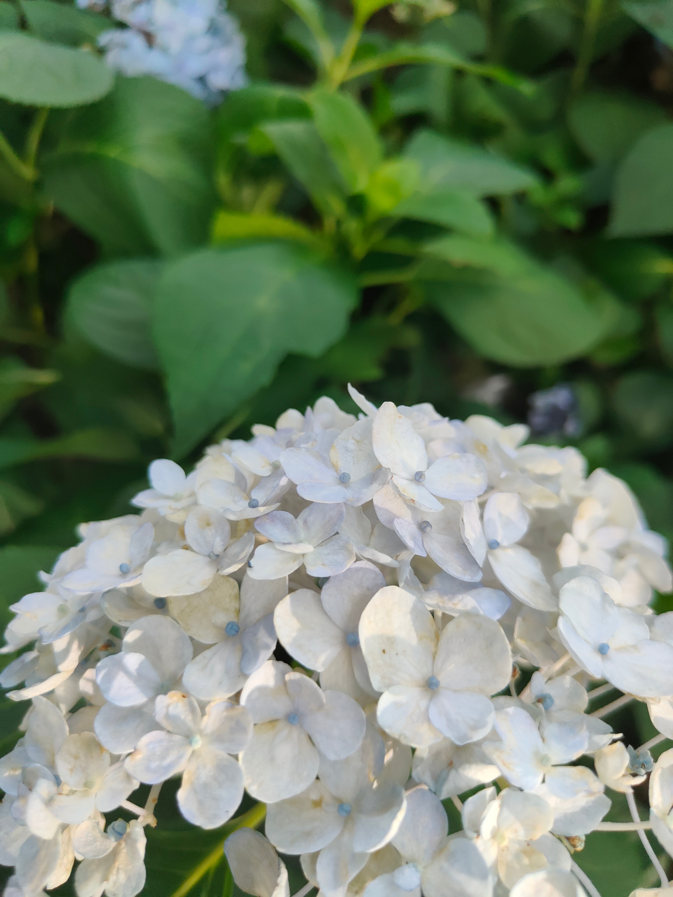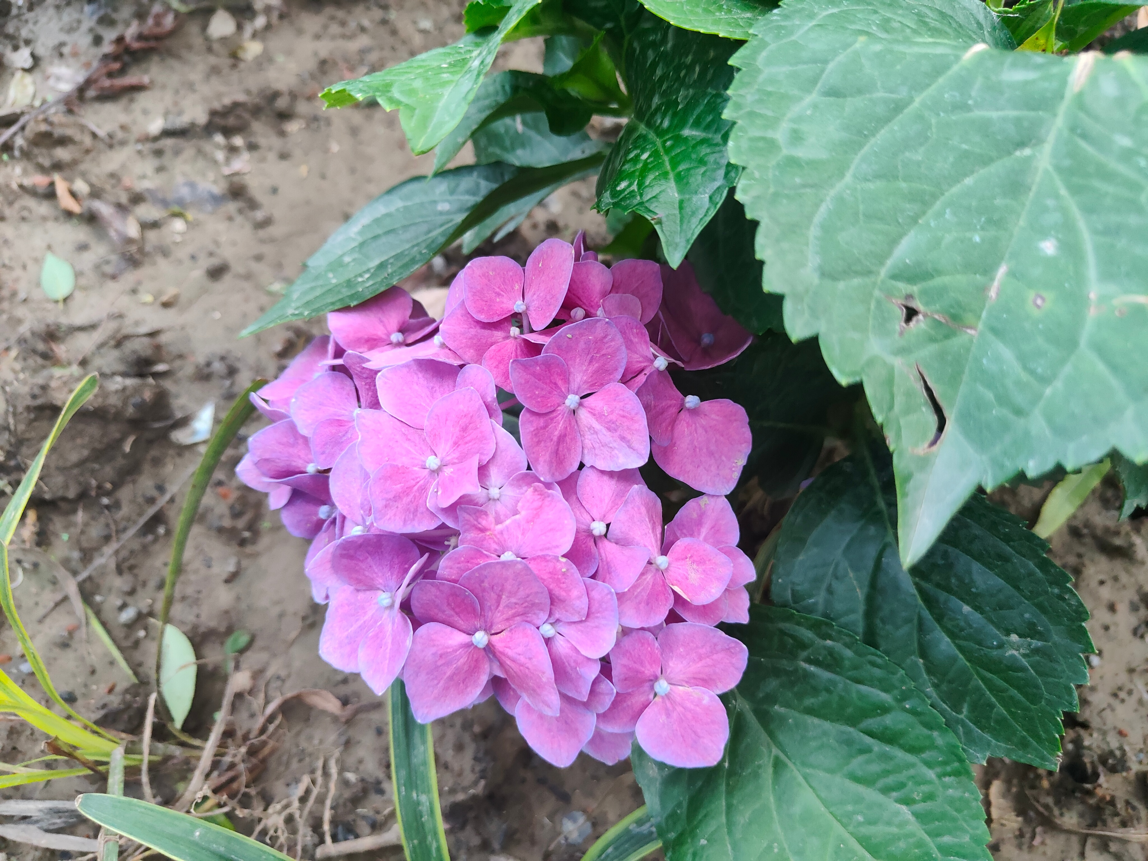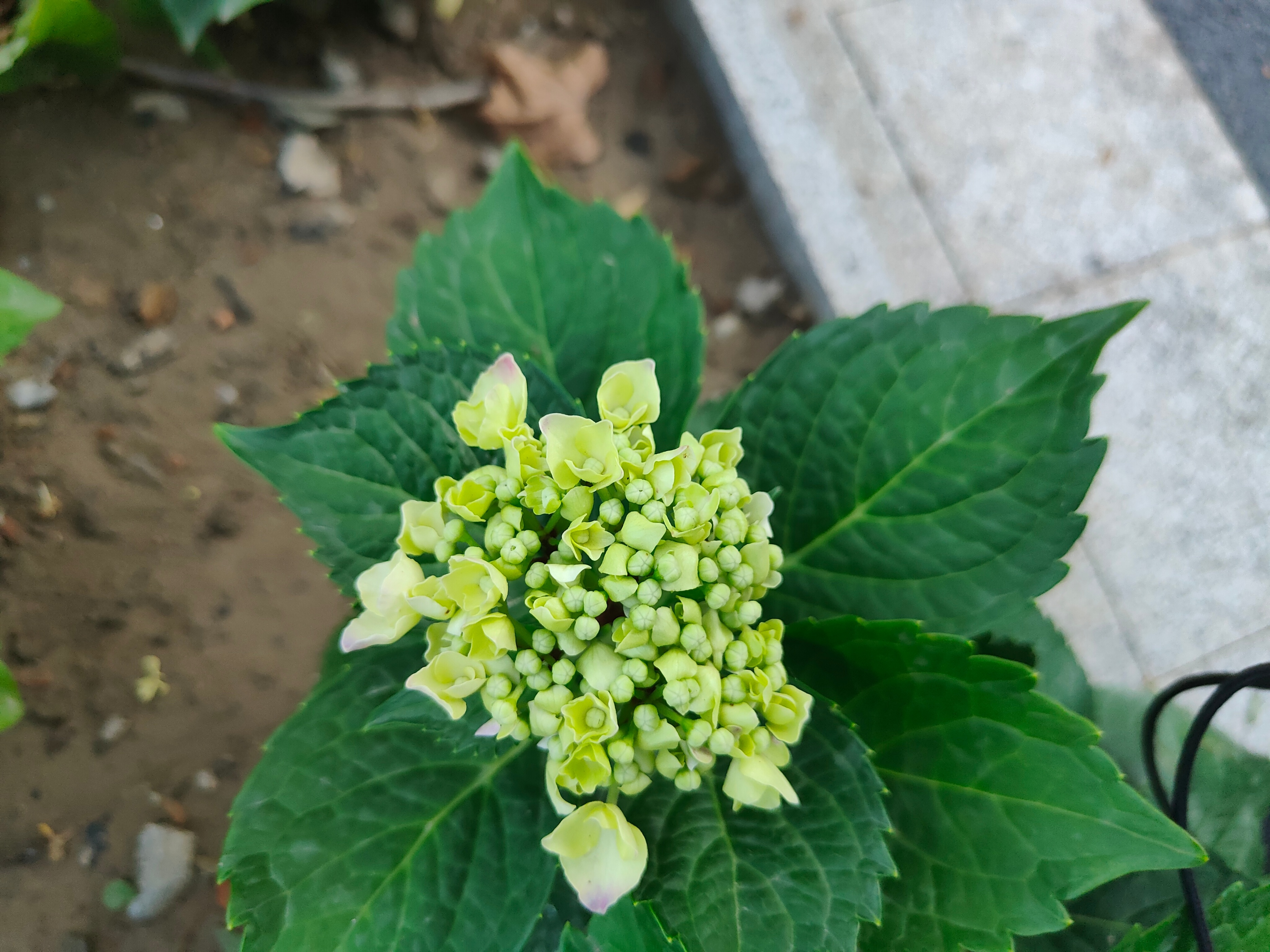 枝头圆簇八仙花,彩蕊呈祥自可嘉。
