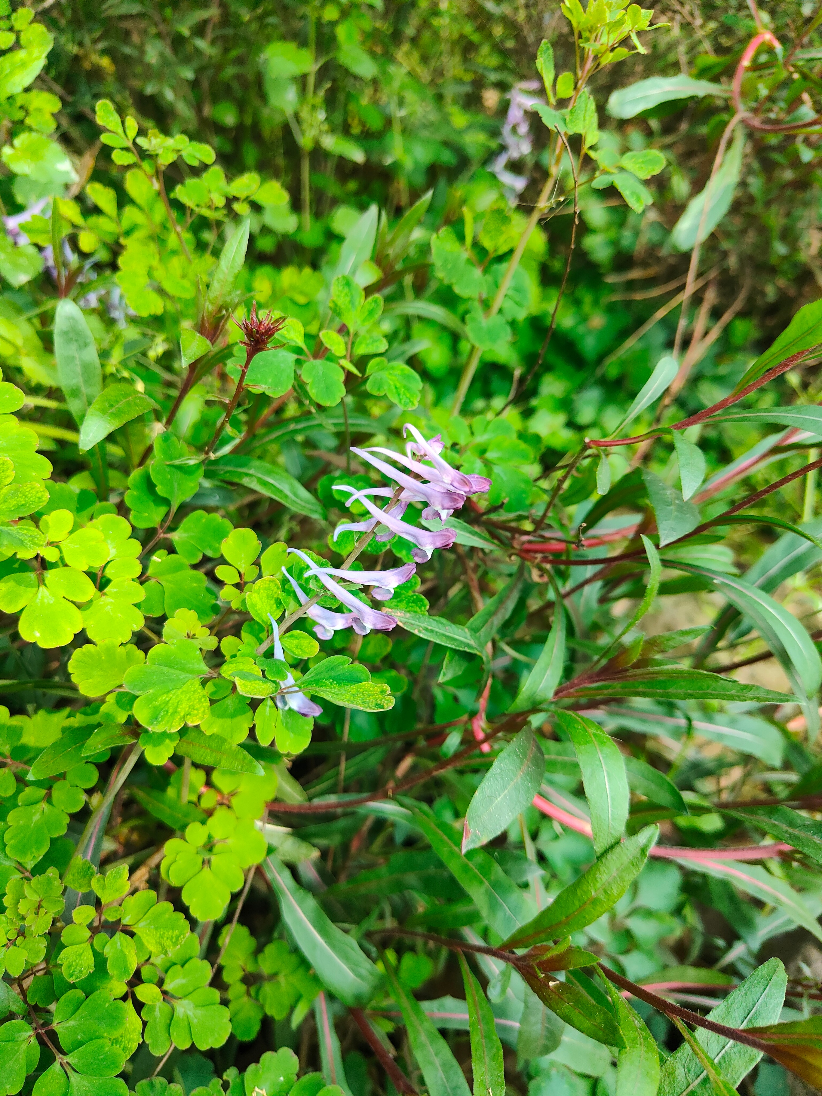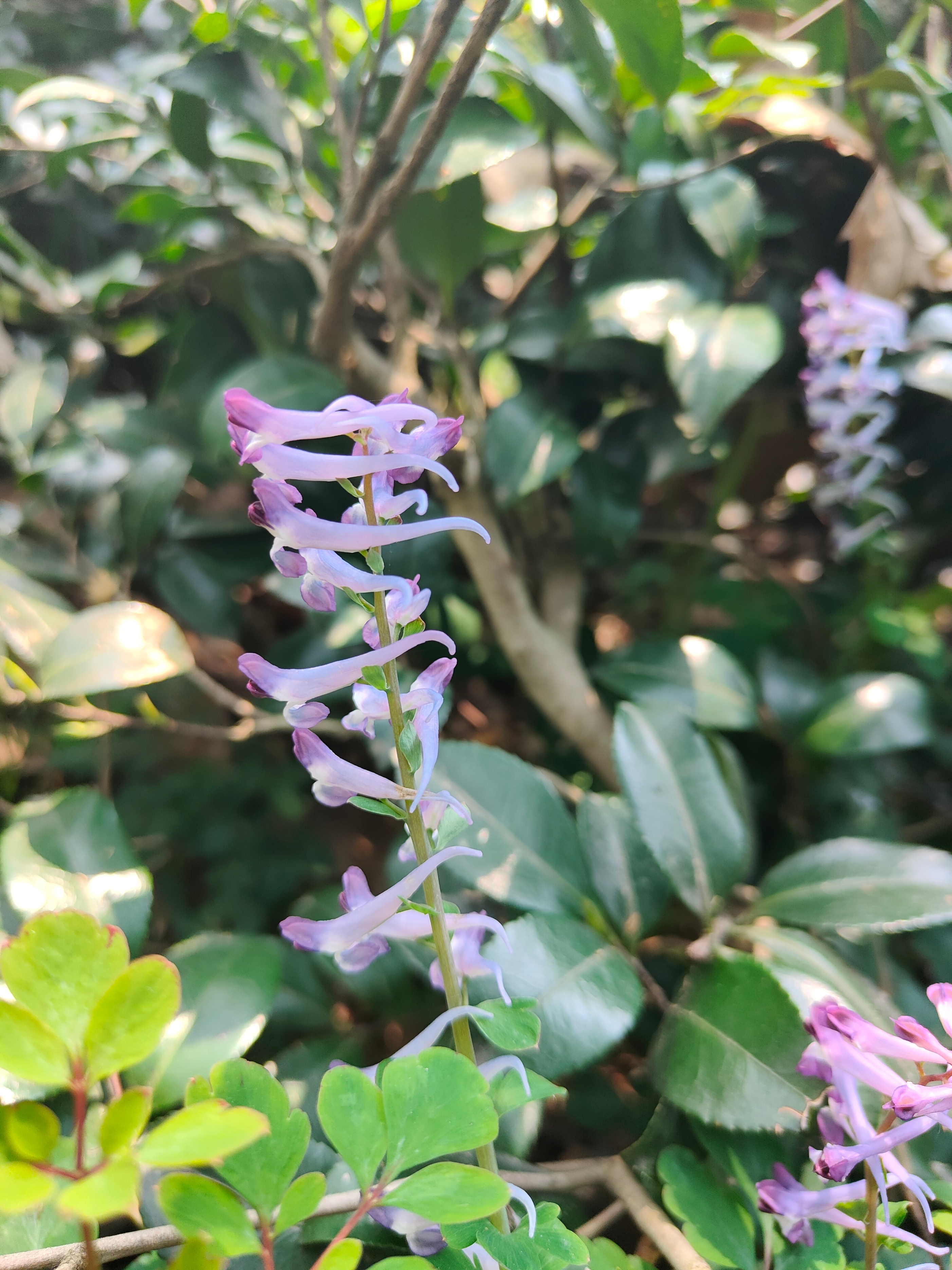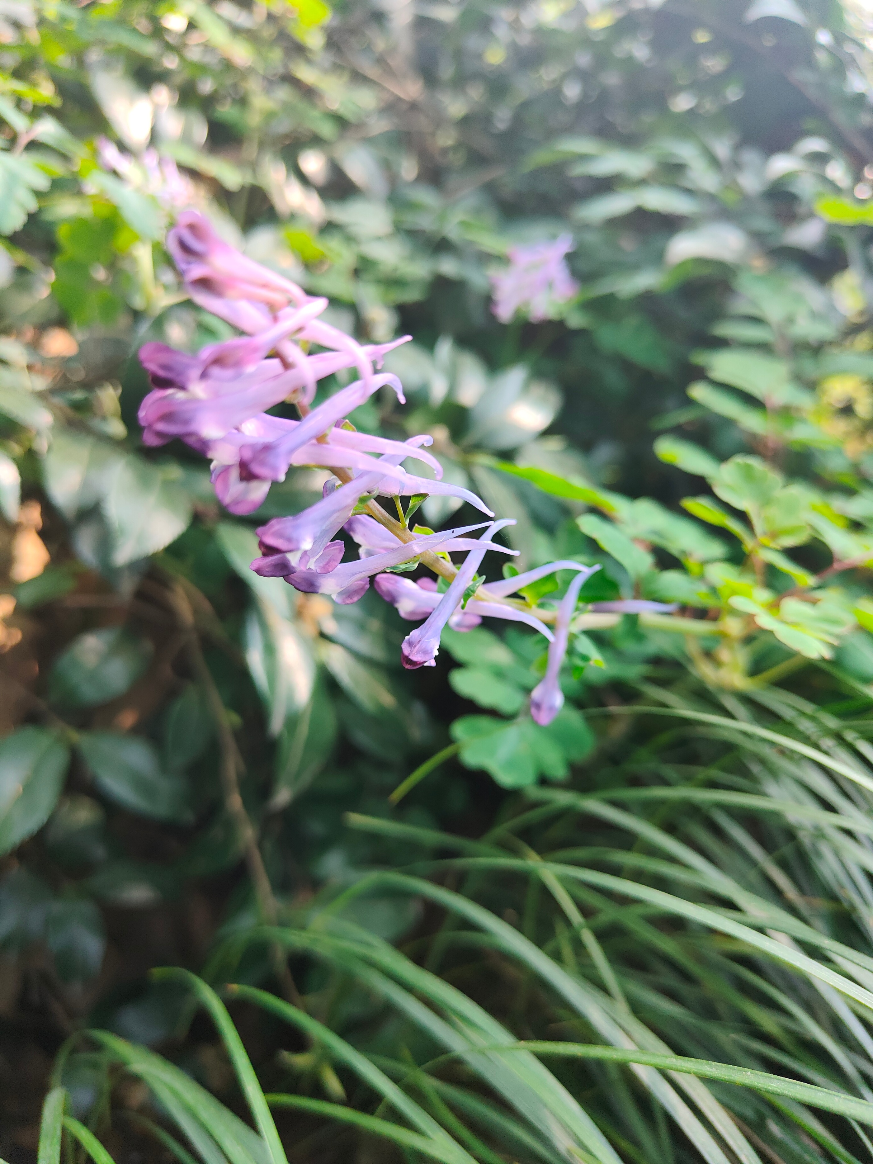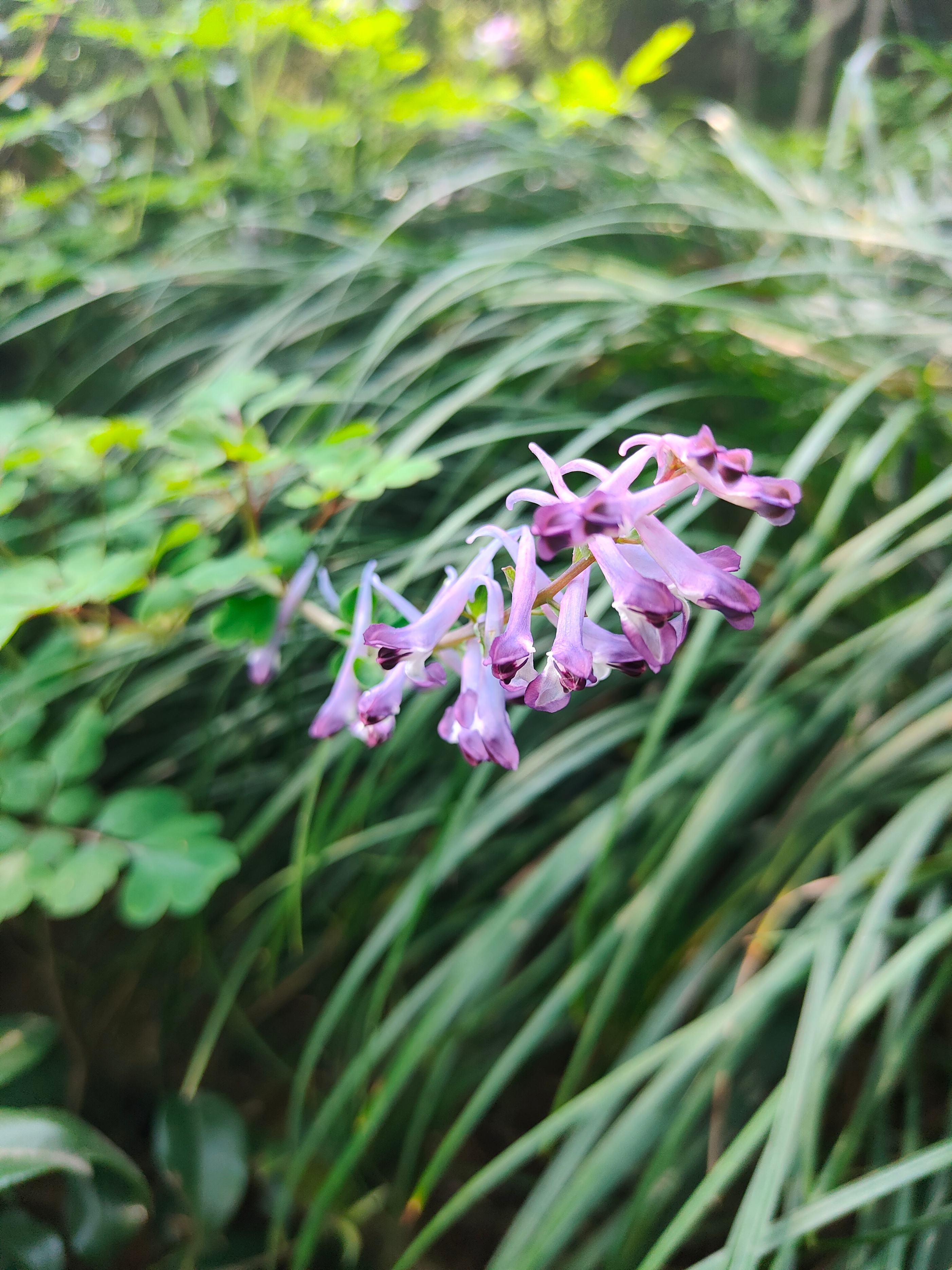 紫堇珠芽地锦苗,乘风袅娜小春娇。