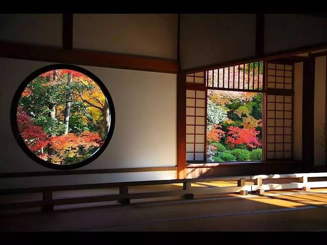 在京都源光庵最有名的就是它的圆窗和方窗。