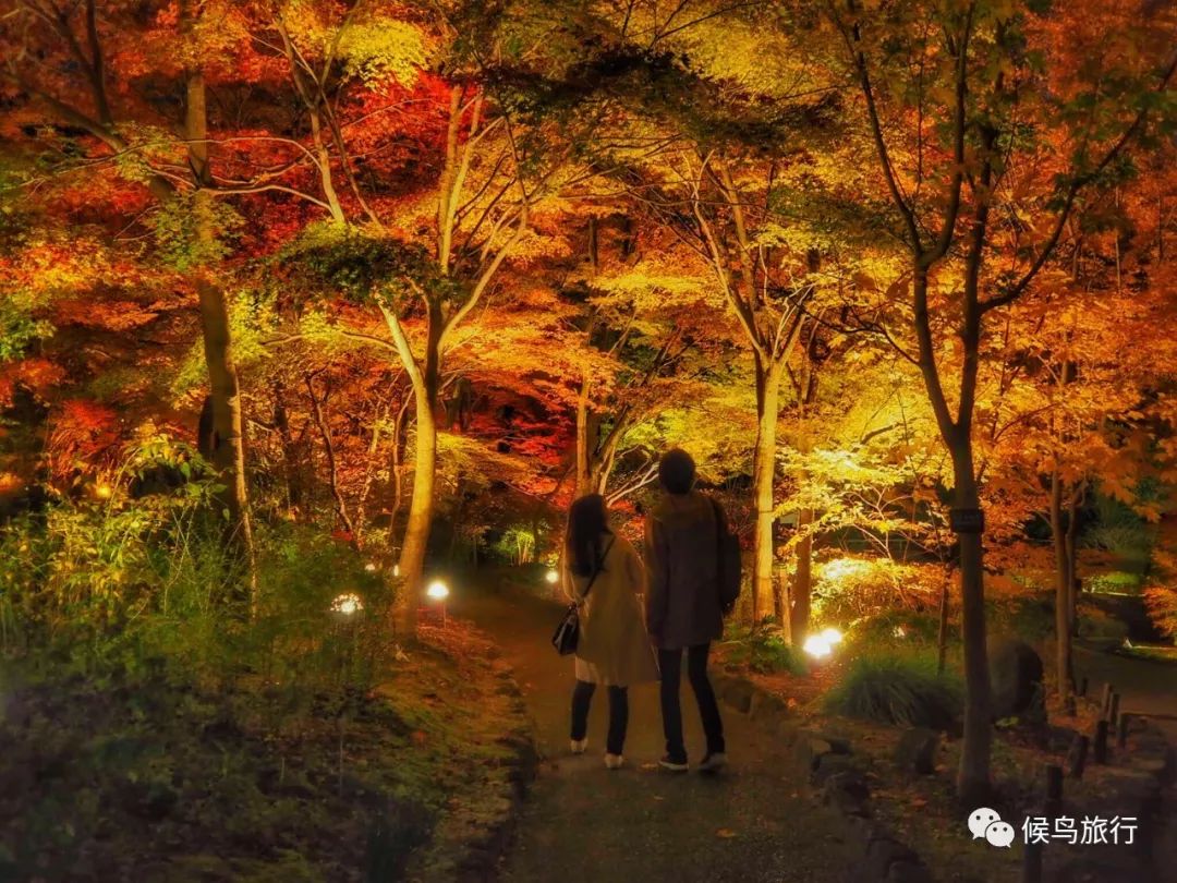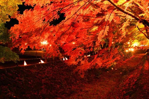 虽然说白天的枫叶光彩照人,但赏夜枫也是值得体验的独特项目。