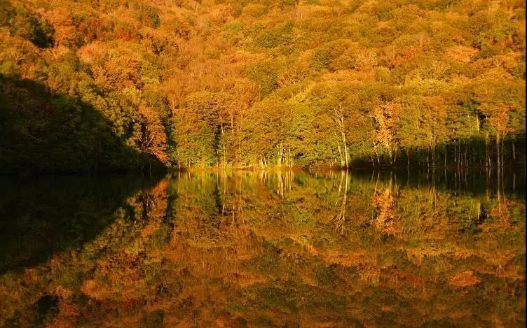 朝霞散去后,茑沼的红叶也逐渐随着日光转变为橘黄,每一片枫叶都闪烁着耀眼的金色,让人不禁惊叹大自然的神奇。