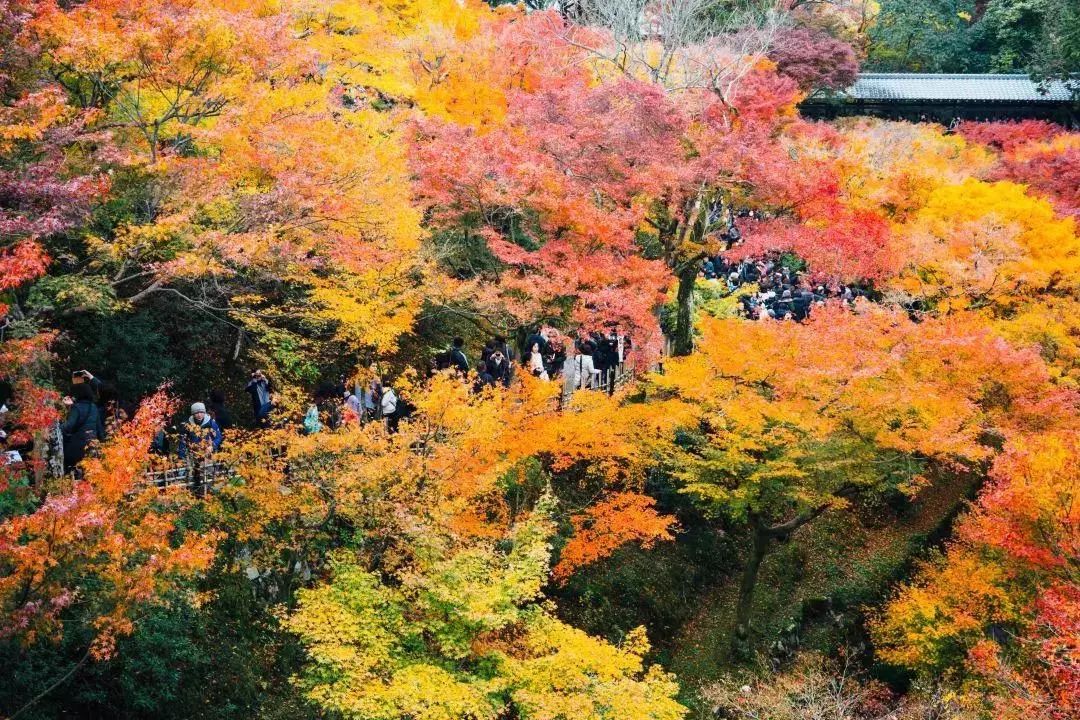 之后,日本就进入全民“红叶狩”时代。每年九月起,狭长的日本便渐渐进入绿、黄、橙、红交错的斑斓世界。