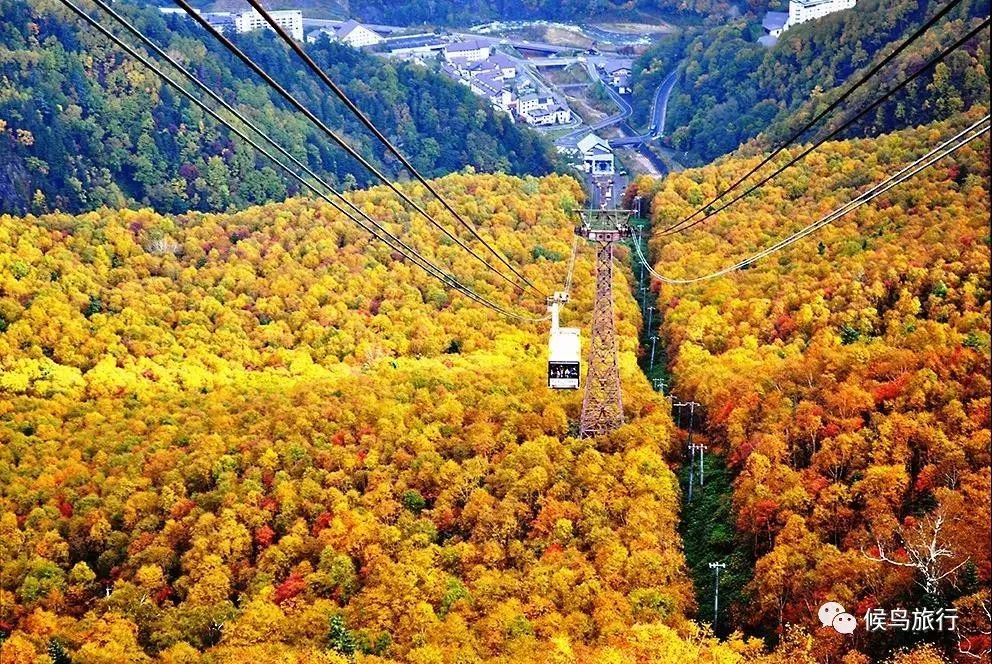 到达黑岳站展望台时,漫山遍野红黄交融,往下可鸟瞰石狩川,那红疯了的枫叶仿佛在侵略你的眼球。