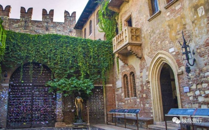 朱丽叶故居的阳台是情侣们的圣地,院子里的铁门如今也成为了游客们挂同心锁的地方,而旁边的朱丽叶铜像则成为了这些挂锁情侣的爱情守护神。