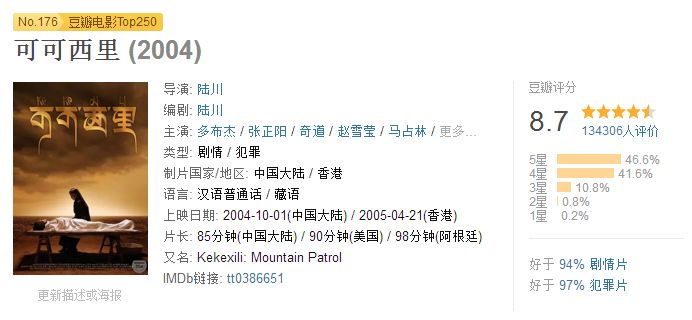 豆瓣高达8.7国产片《可可西里》,一部关于信仰和生命的电影。