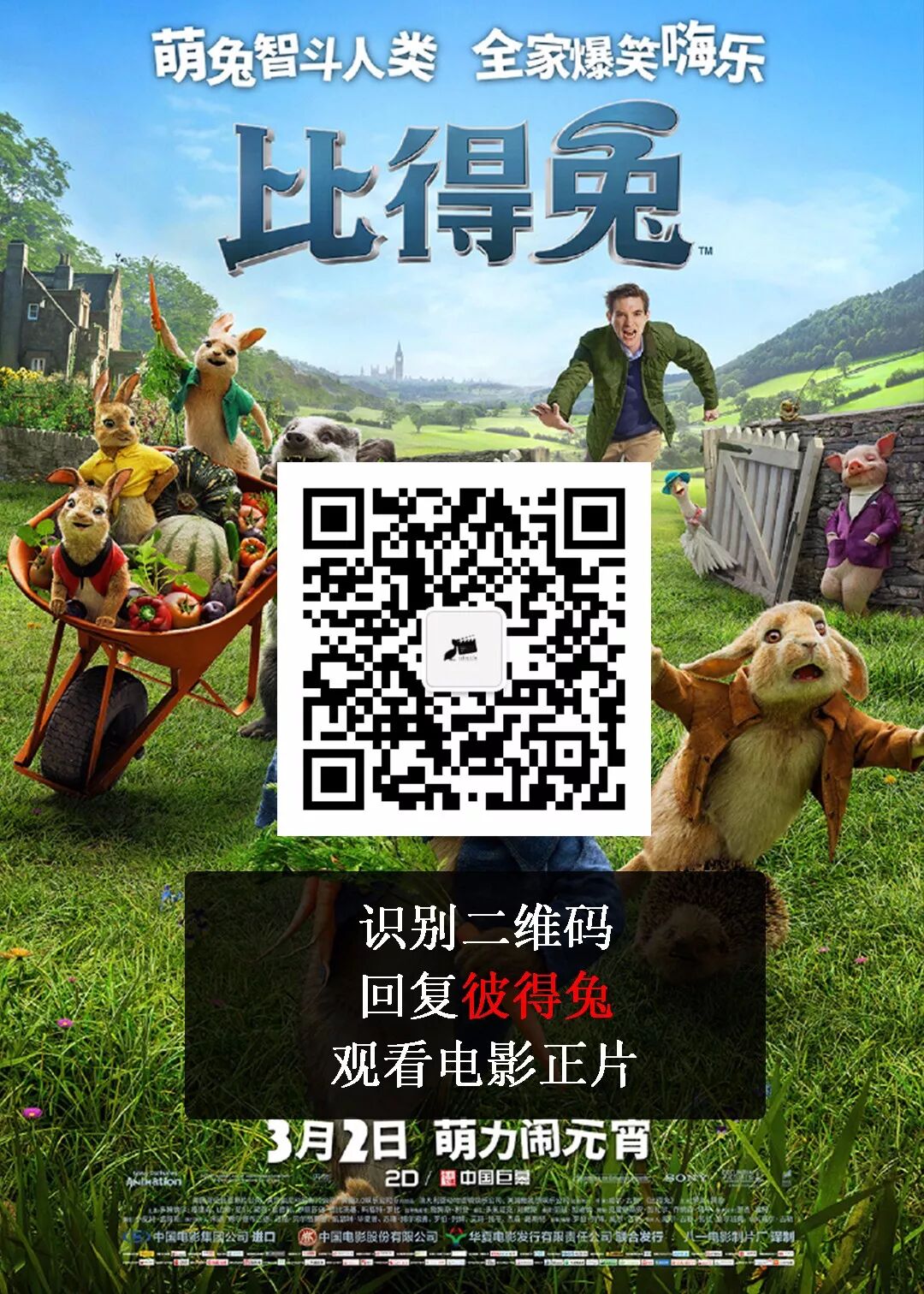 「后台回复“彼得兔”,观看电影正片」https://mmbiz.qpic.cn/mmbiz_jpg/WTQ13Ab7dtbb3uIAF9oblkt1xzZZgm12QW6kFDWPIO4qcgaAXBNaepicTM5iabKGp8VQYiamzibDicM1c0T3RERwgyA/640?wx_fmt=jpeg
