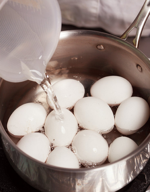 1、将蛋放入锅中,加入冷水。蛋若是刚从冰箱中取出,要稍微泡水一下,让蛋与水同温,蛋才不会因为煮得过程中温差过大而破裂。