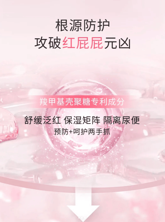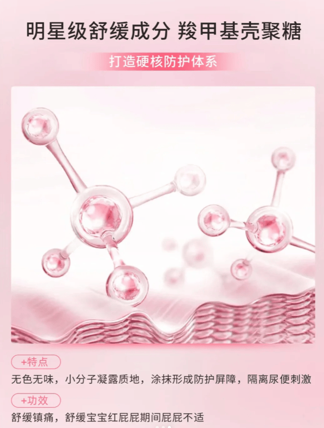 核心修护力来自于专利成分羧甲基壳聚糖,隔离尿液刺激、舒缓红温肌肤,远离红屁屁,效果杠杠的!
