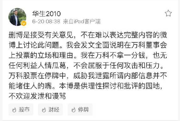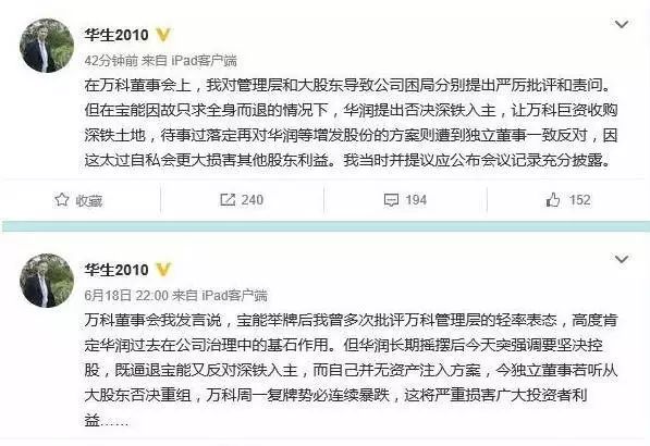 目前留下的悬念太多了,最近我准备写一篇长文(此处是预告,小编注)。有一个观点我非常明确的。没有主人的公司,必将走向衰落,万科是当前中国管理最规范,最透明的公司之一,这种规范与透明,恰恰建立在其创始团队鲜明的价值观之上。王石如虎,虎行有风,郁亮如豹,豹行潜踪。与郁亮接触不多的人,可能觉得他谦和严谨,却缺乏攻击性,但他们并不了解,万科成为千亿公司,是在郁亮操盘下完成的。这个能控制自己体重的男人,有足够的能力控制人生以及公司,他只是善于藏锋。如果万科的控制权,脱离了创始团队,不管手段多么光明正大,对万科,绝对是一场灾难。