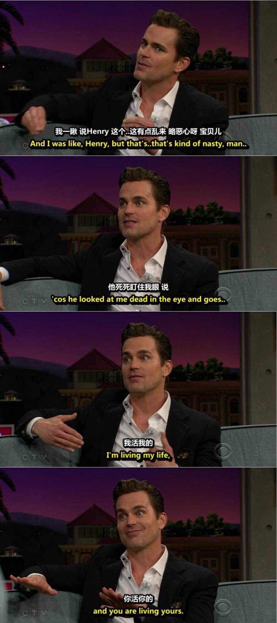 Bomer带儿子们去吃冻酸奶,双胞胎之一的Henry乱选了一大堆配料。Matt说这样不会好吃。年仅8岁的小Henry拽拽地回复:“我活我的,你活你的,okay?”