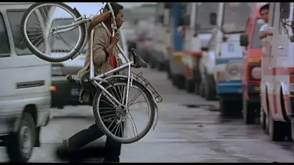 这个农村的少年,扛着变形的单车,于是似乎扛起了变形的理想,继续前行在迷茫的路上。
