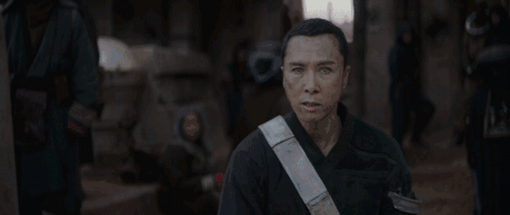 不得不提甄子丹饰演的“盲侠”奇鲁·英威,不仅贡献了精彩的打戏(有外国网友戏称他是太空叶问),还凭借他的一句口头禅对白,成为了全片中最有绝地武士气质的角色。
