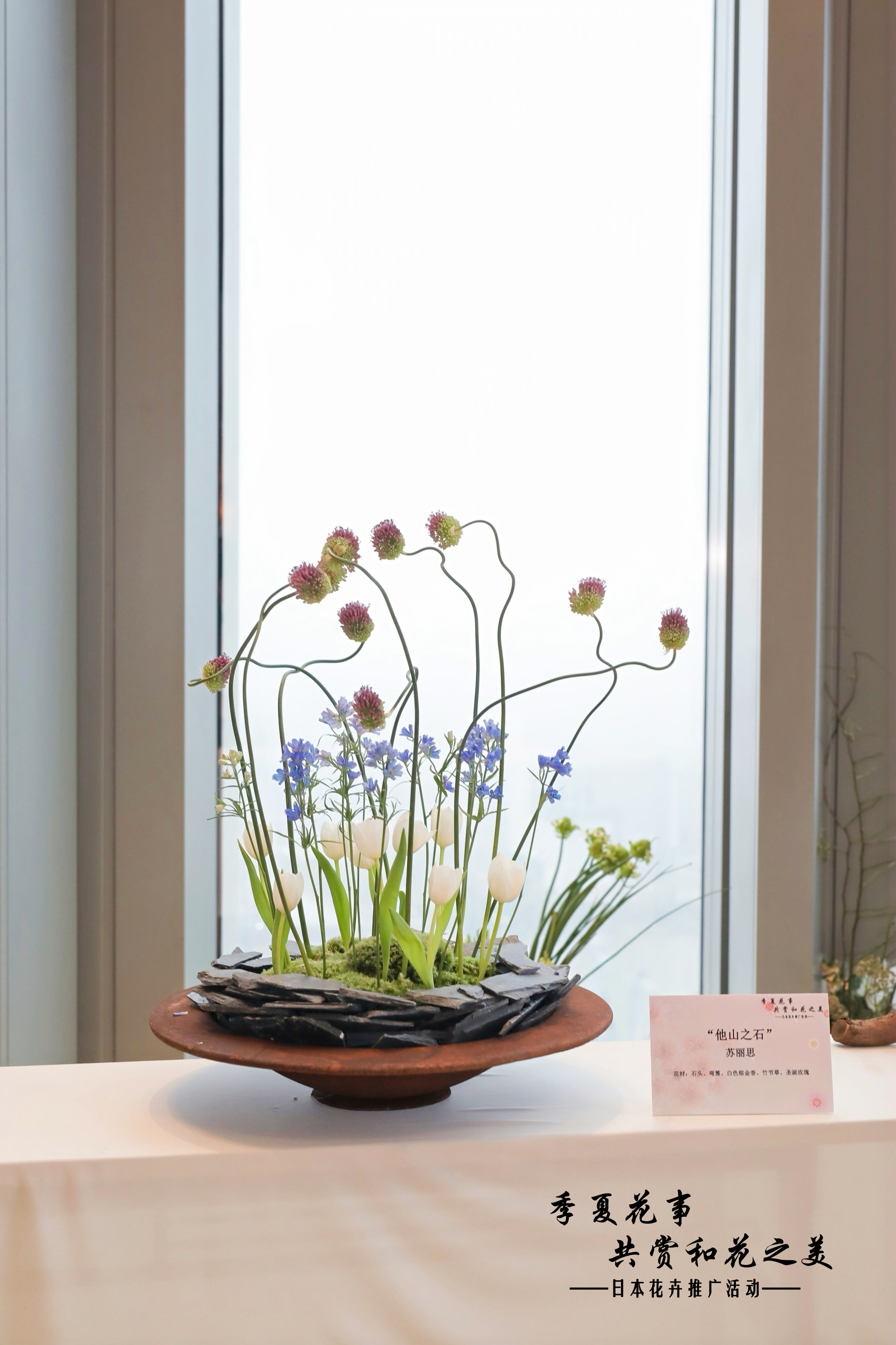 展览空间的布置独具匠心,美轮美奂的花艺作品与窗外的广州美景相互映衬,营造出极具东方禅意又不失现代感的观展氛围。观众漫步其中,沉浸式感受日本花卉的独特韵味,在花与景的交融中,体会到日本花卉文化中对自然、对美的独特理解与追求,仿佛进行了一场心灵的洗礼。