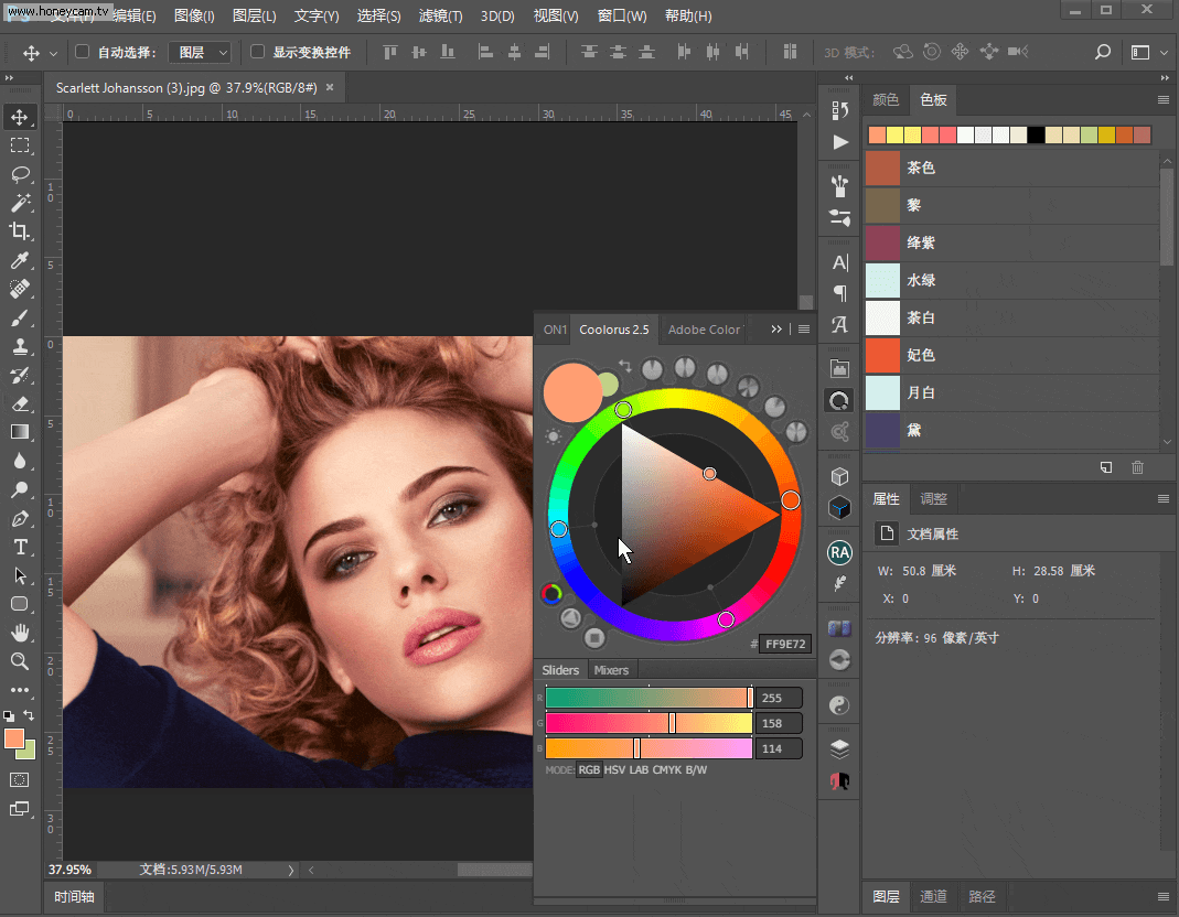 好了,再次打开PS,如下动图所示,点击窗口>扩展功能,选择点击安装的扩展插件,比如案例里的Coolorus 2.5.7.457,可以看到已经可以正常使用了,开心。