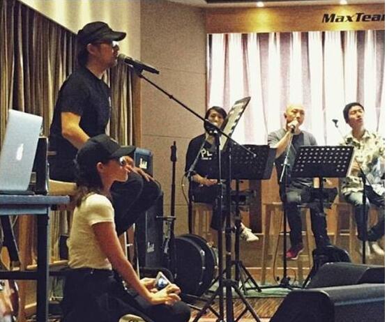 章子怡秒变老公粉丝不断给其拍照,而在排练休息的时候,汪峰也是搂着章子怡画面温馨。汪峰本人还表示新专辑已经为章子怡创作了一首新歌。