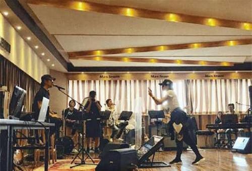 视频中,汪峰身穿标配黑色T恤、黑色鸭舌帽休闲装扮,手持吉他与其他队员进行着紧张的闭关排练。乐谱、电子琴、架子鼓、调音设备等在视频中一闪而过。章子怡这段小视频短短十几秒拍出了“摇滚范”。