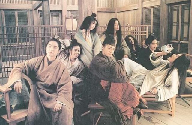 《东邪西毒》其中的四位主演,张学友、梁家辉、张国荣、梁朝伟兄弟四人,其中三人披头散发
