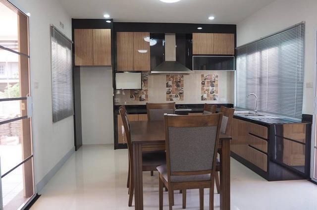 开放厨房,实木餐桌。餐厅暖色调配色,可以让人增加食欲。