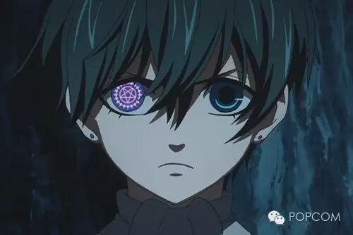 左眼宝石蓝色,右眼是五芒星阵。也正是用右眼与塞巴斯蒂安交换契约使其成为他的执事。