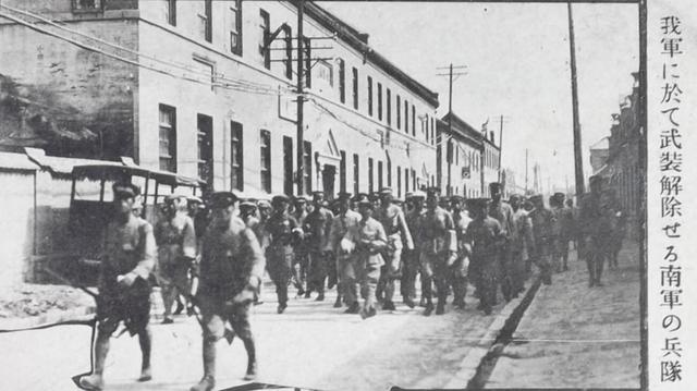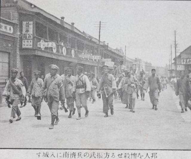 中国军队为北伐大计,先行忍让,很多士兵被日军解除武装(如图),但最终忍无可忍,与日军战斗。后奉命撤出。日军进入济南之后,进行无差别屠杀。计有17000余军民被杀,2000余人受伤,是谓济南惨案。
