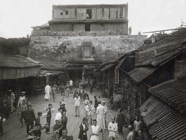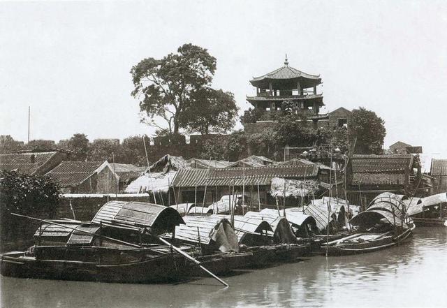 这张照片,也显示拍摄于1885年。城墙很完整。广州乃南中国重镇。曾发现有西汉时期的水关——护城河与城墙交叉处的过水口。可知,广州建城史,已有两千多年。