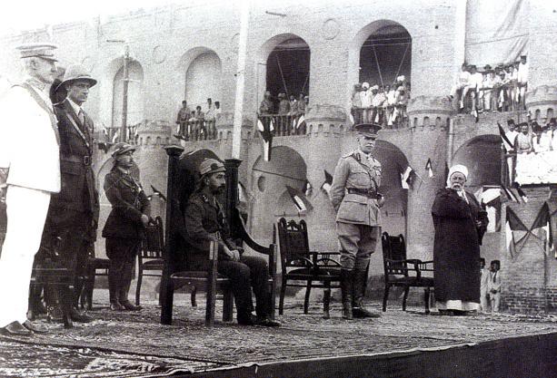 他们把一战结束后巴黎和会上阿拉伯代表团的领袖费萨尔·伊本·侯赛因拉了回来。 之前费萨尔·伊本·侯赛因是大叙利亚的国王。叙利亚被托管给法国之后,将他扫地出门。他逃亡英国。英国人觉得他还可以利用,于是让他做伊拉克国王。