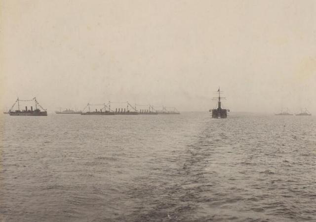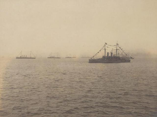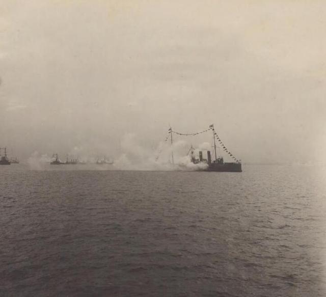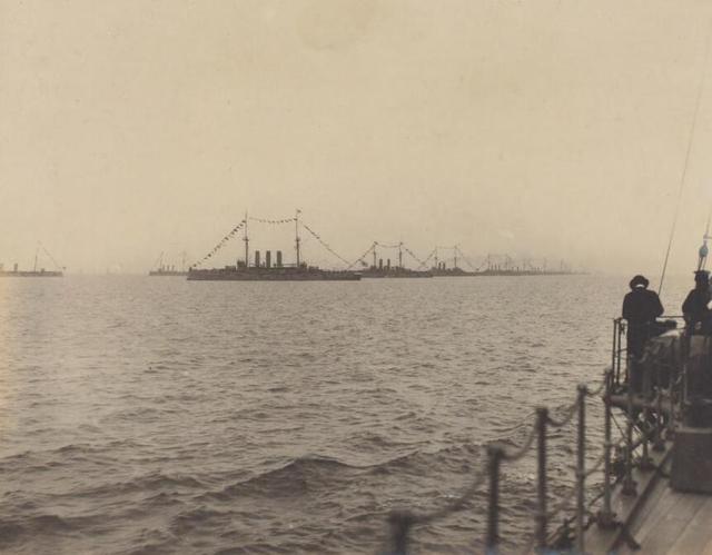 老照片:日俄战争后日本举行海上阅兵,有些军舰处于世界先进水平