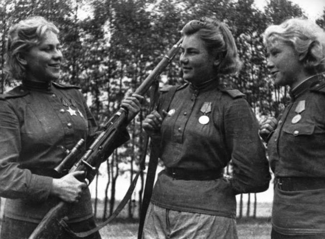 苏联为了鼓舞士兵,拍了很多狙击手的照片。