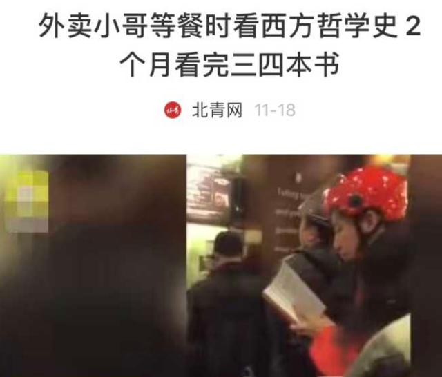 北京有一位26岁的送外卖小哥,十分喜欢看书,每次出去送餐,他都习惯带着,然后在取餐的间隙拿出来看,在送外卖的3、4个月期间,他已经看完两三本书了……