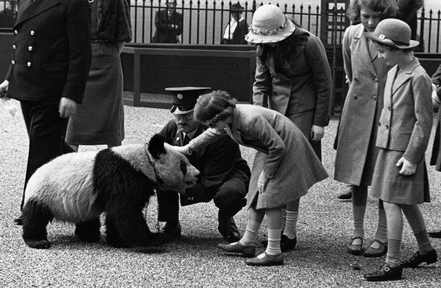 我在查找老照片的时候,发现1939年5月,伊丽莎白公主到动物园游玩时,就遇到了一只大熊猫。