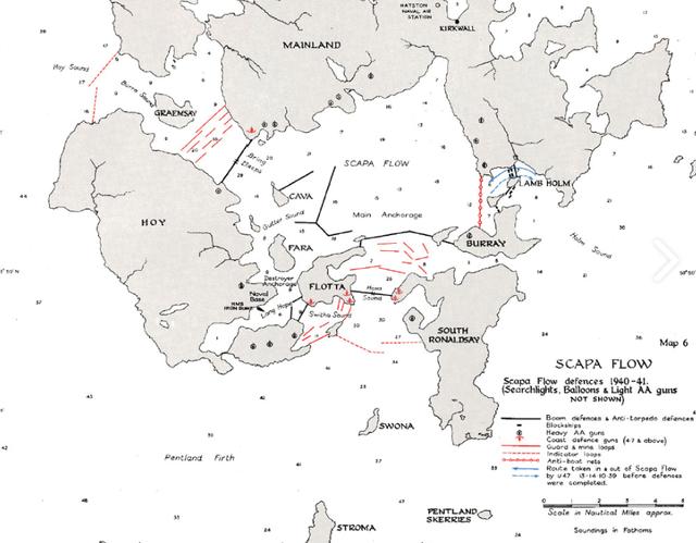 斯卡帕湾位于奥克尼群岛,处大西洋与北海要冲,是德国水上交通必须逾越的障碍。