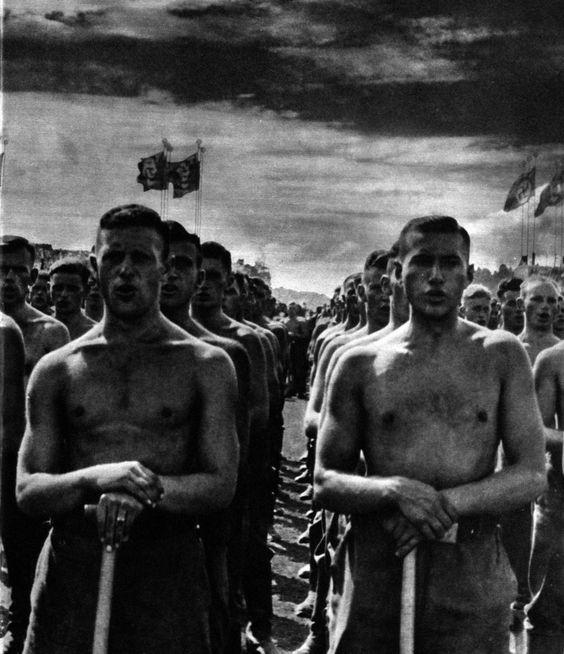 小伙子们制服统一,集体生活,行动军队化,衣食住行全部由国家承担,每人每天还能领到25芬尼的零用钱……早上5点半就集合点名,然后出早操,回来后吃早餐,饭后分配工作,然后就是出工。