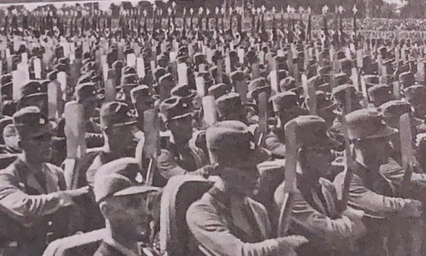 网上有文章写,德国阅兵时,军人们没有枪,只能用铲举着接受检阅……