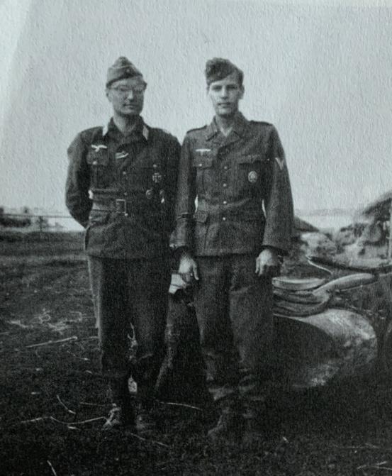 二哥在西线,两人还在战场上碰到过,拍了张照片。都很平静,看不出久别重逢后的。1945年,他被平射的苏军高射机枪打中,半边脸没了。这是在场的人告诉罗迪的,但埋在哪里,他不知道。