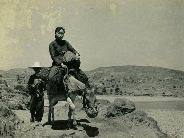 山西省,一个女子,不知是回娘家,还是从娘家回。