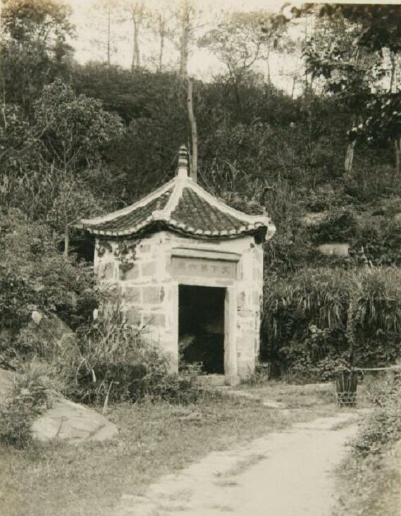 今天看老照片,庐山招隐泉,盖着一亭子,门楣之上,却写着几字,不由得滚动中键,放大瞧瞧。
