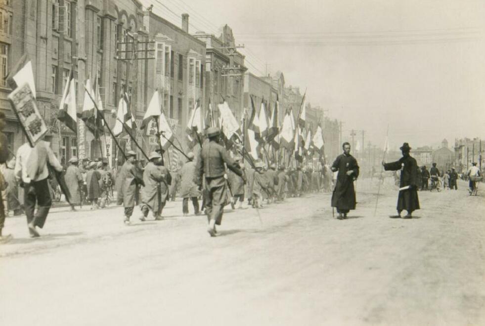 旌旗后列,是各色纸幡,后面抬着的,大概是两头狮子?