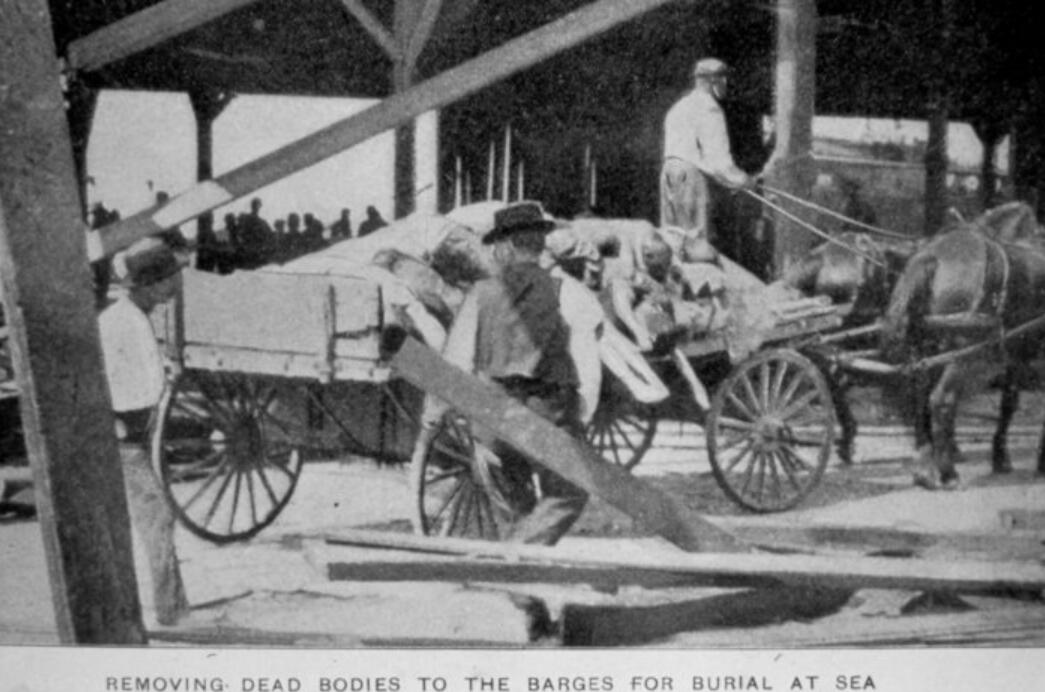 遗体的处理,成为难题,墓地根本埋不下这么多人,志愿者们把遗体抬到船上,运往大海,结果,却又被海浪推了回来。