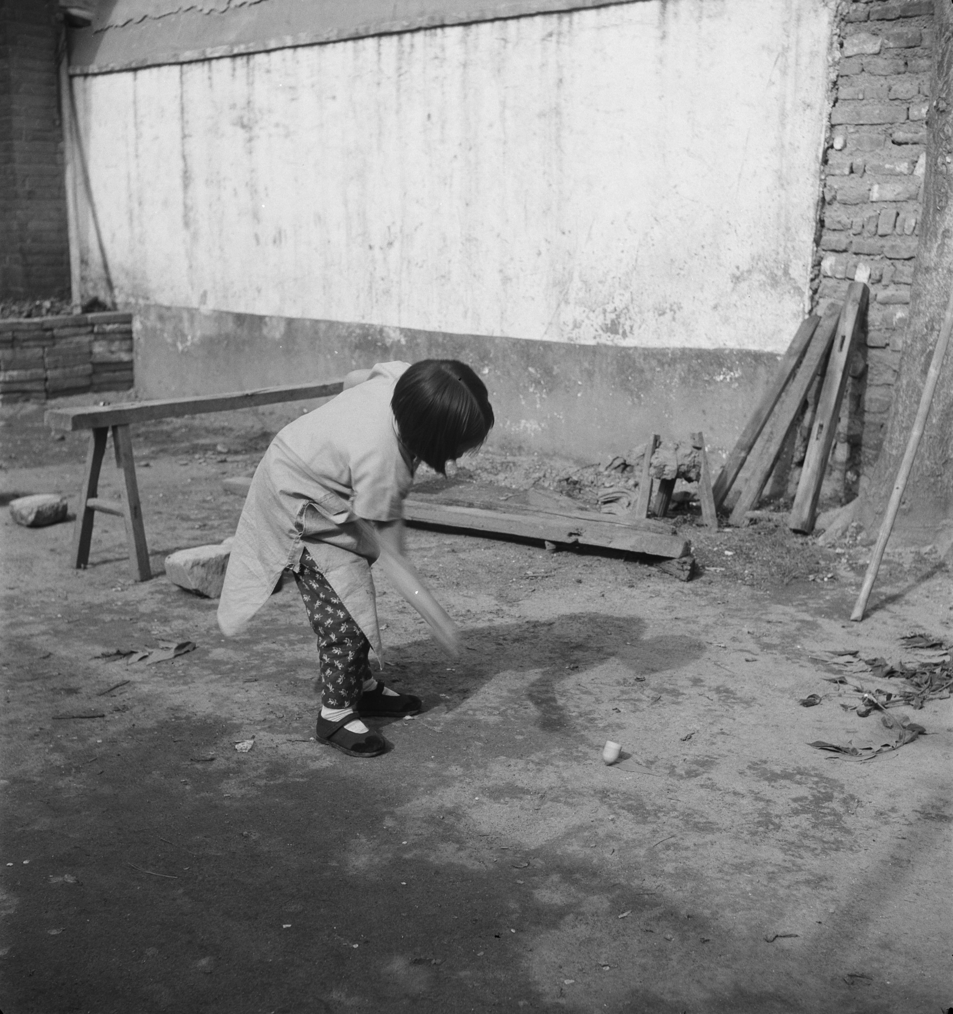 地上一个陀螺,倾斜着,很快就会无规则地乱转几下,又得绑绳重来。