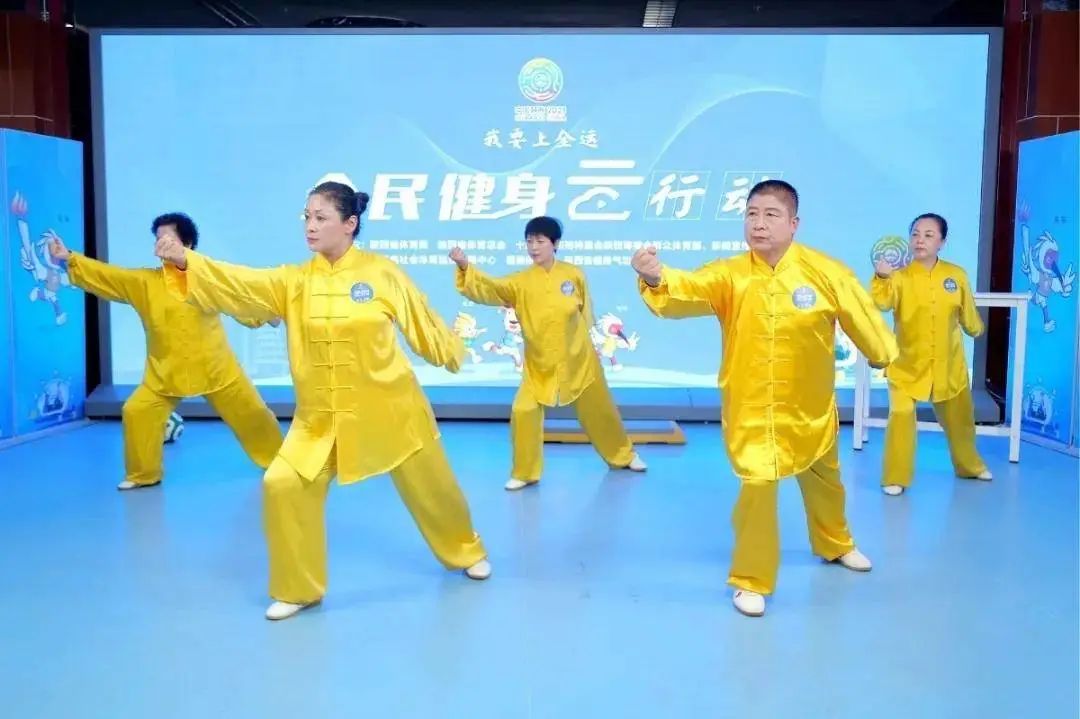 资料图:“我要上全运”全民健身「云」行动健身气功项目直播在陕西智慧健身服务中心举行。