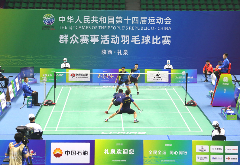 资料图:2021年9月25日,十四运会群众赛事活动羽毛球A、B组决赛在礼泉体育馆收官。