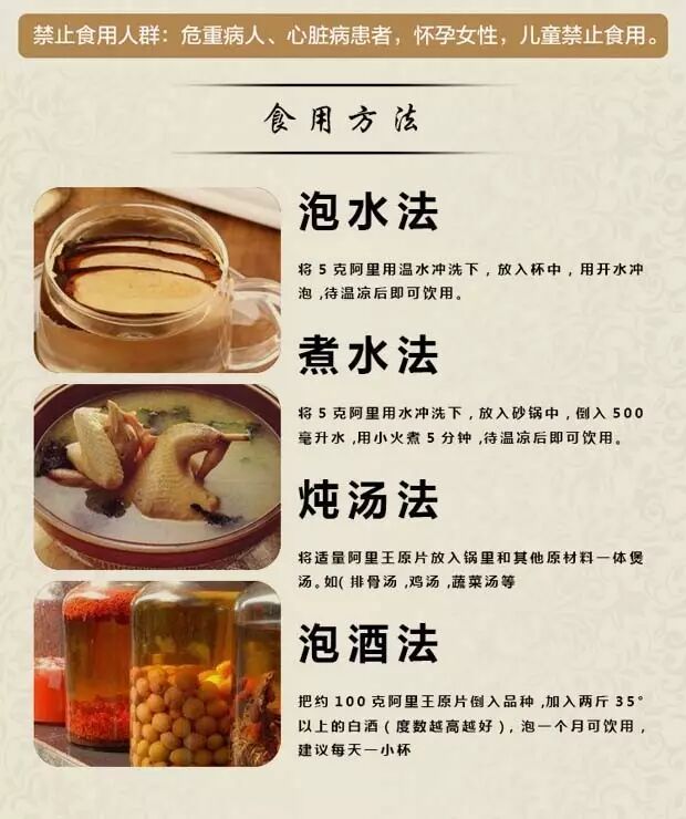 第三、炖汤:个人用量同上,如果人多可以适量加点;把东革阿里原片与排骨、肉片、牛鞭、鸡、鱼等一起炖,肉熟便用。