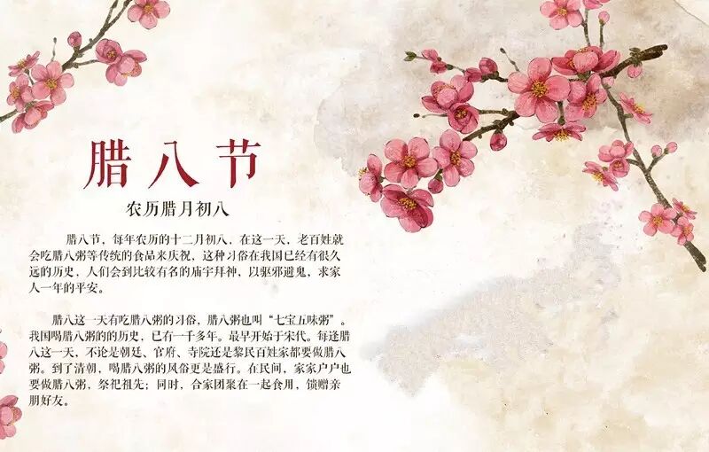 腊八节,俗称“腊八” ,即农历十二月初八。腊八被认为是农历新年的前奏,吃过腊八饭,就把年来办!